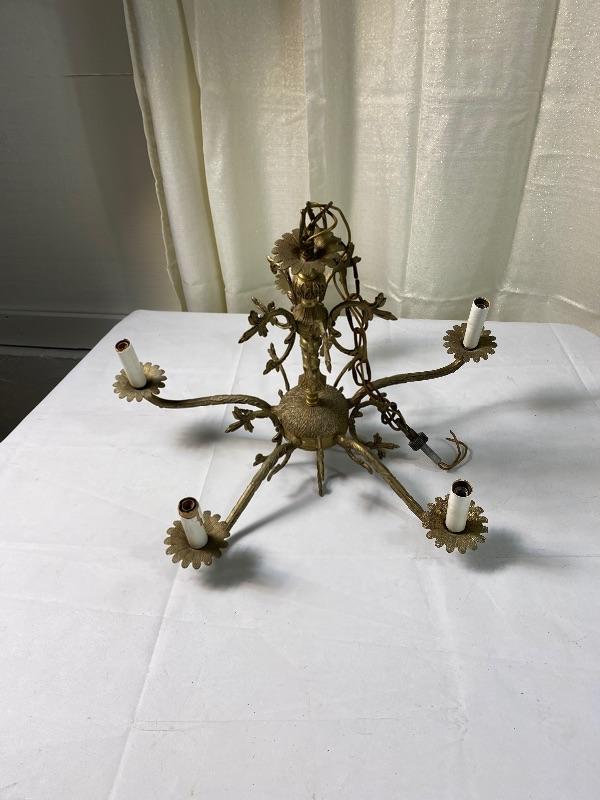 Lot #82 Nice Vintage Cast Brass 5 Light Chandelier