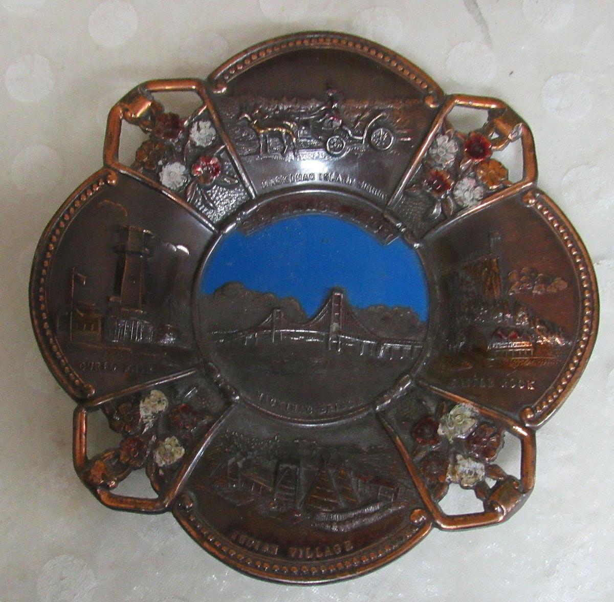 Nice Vintage Copper Decorative Small Tray, Mackinac Bridge Island Area
