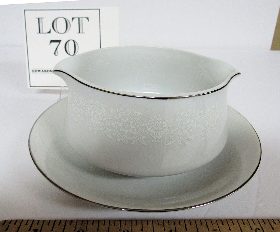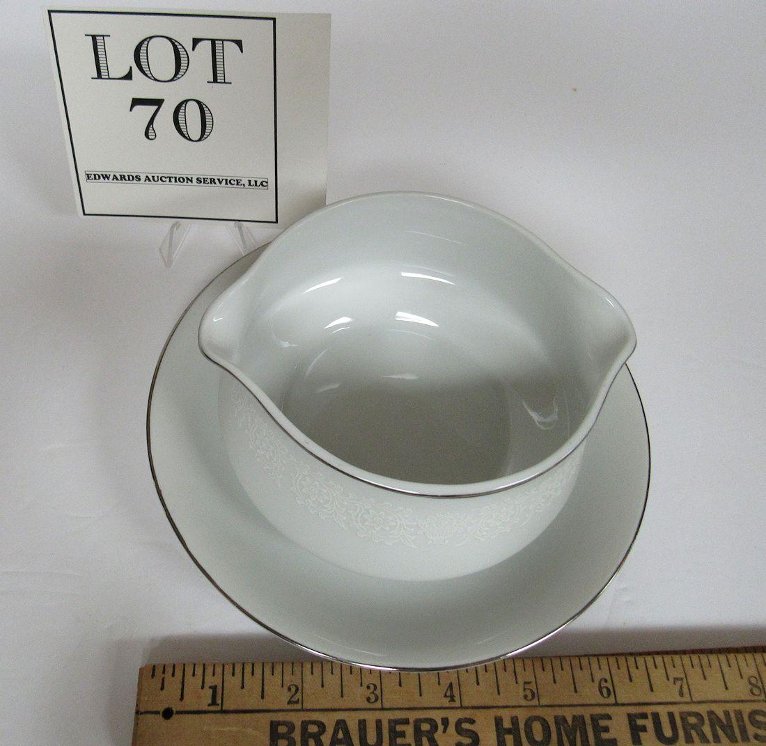 Nice Vintage Crown Victoria Lovelace Fine China Gravy With Attached Underplate
