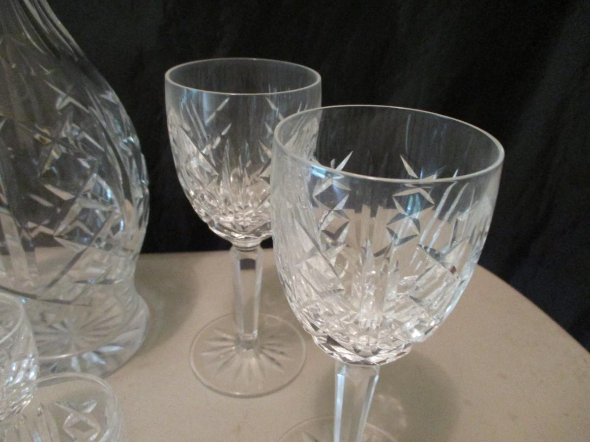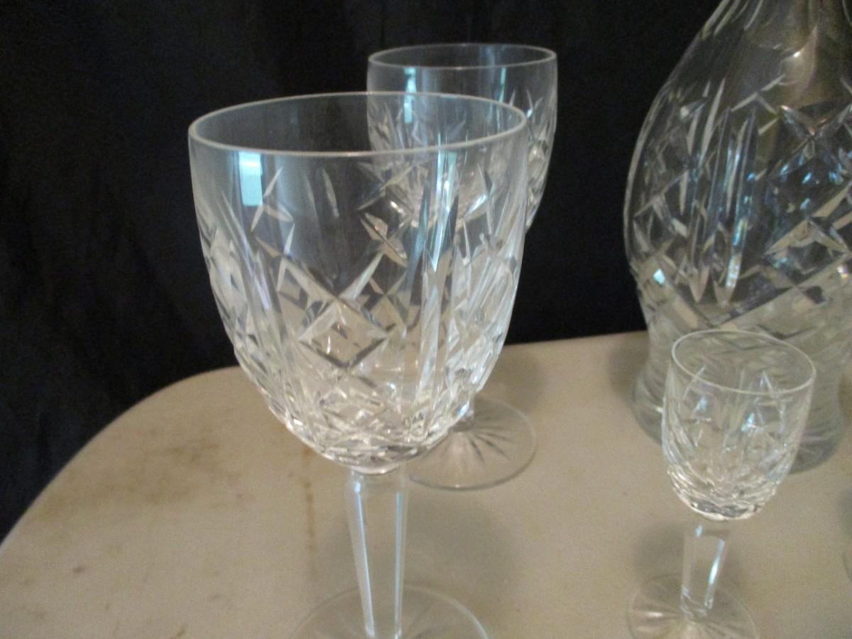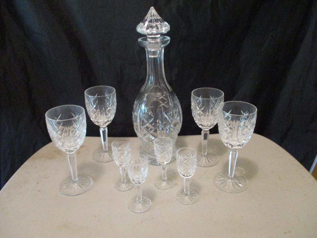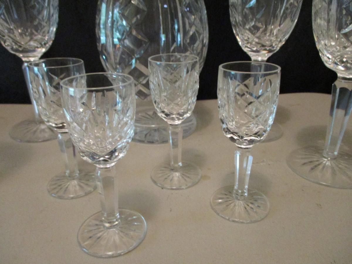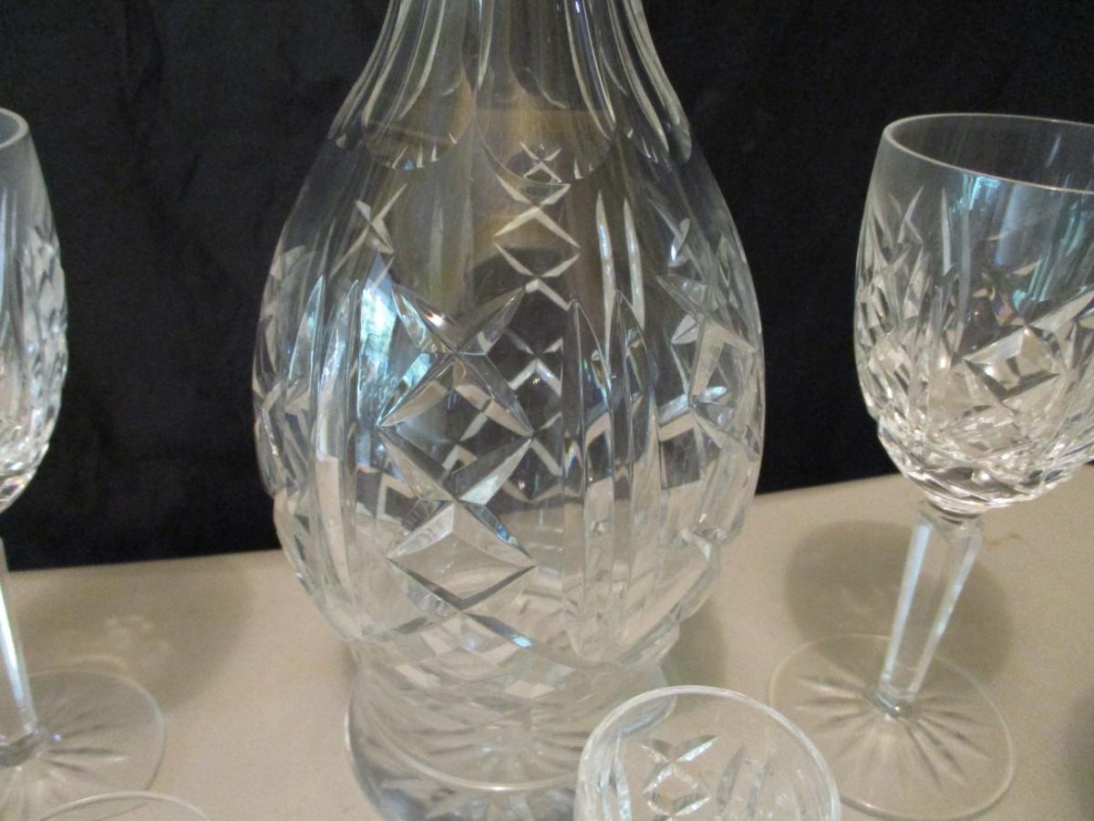 Nice Vintage Waterford Marked Crystal Decanter and Stemmed Glass Set