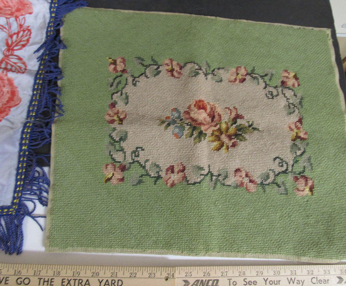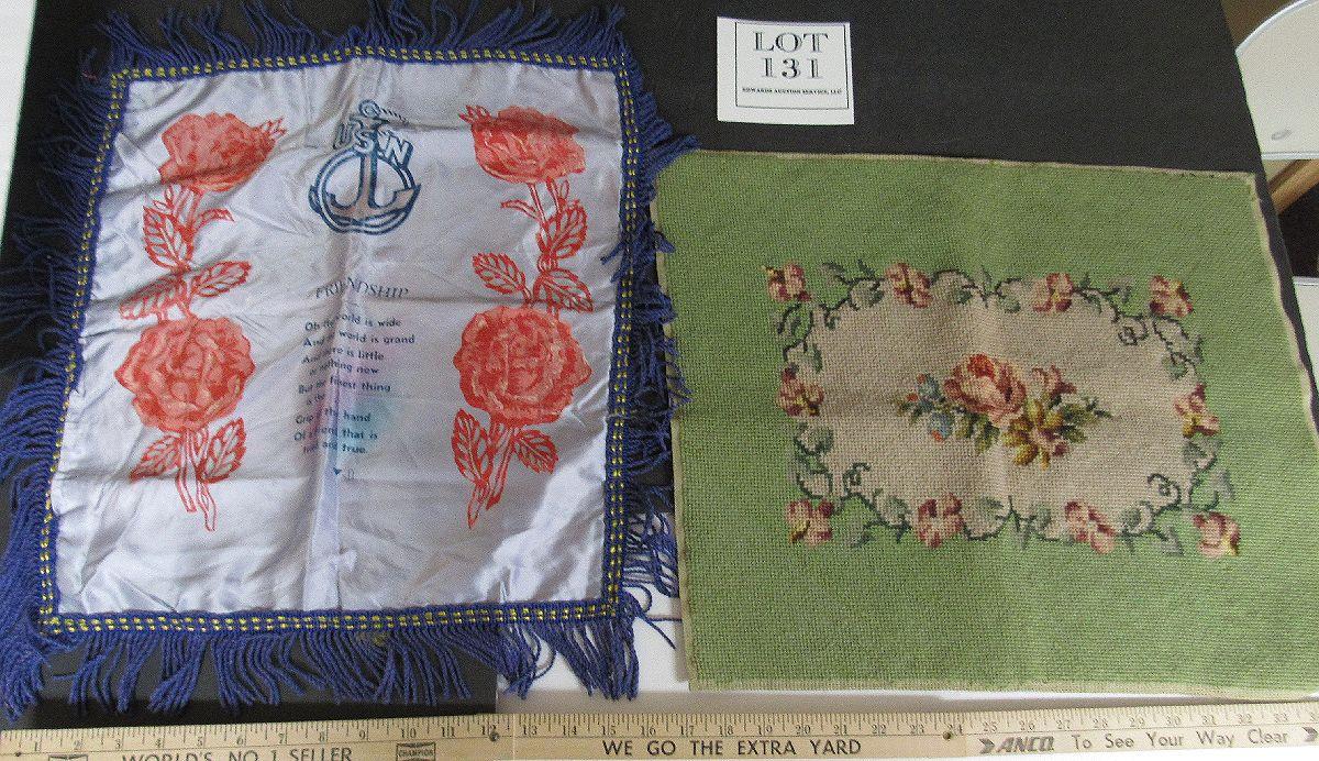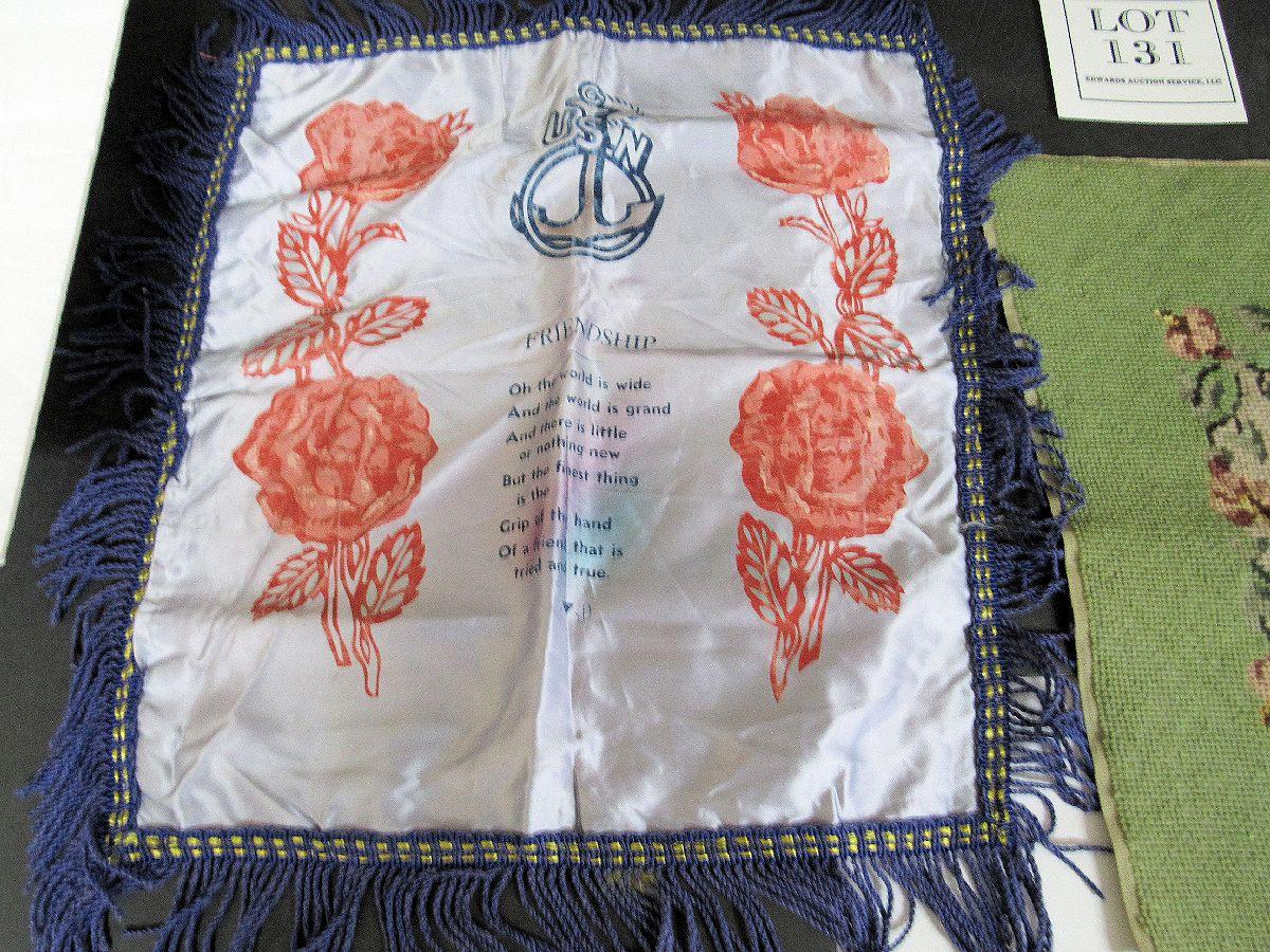 Nice Vintage Needlepoint Chair Seat Panel and Vintage USN Pillow Cover