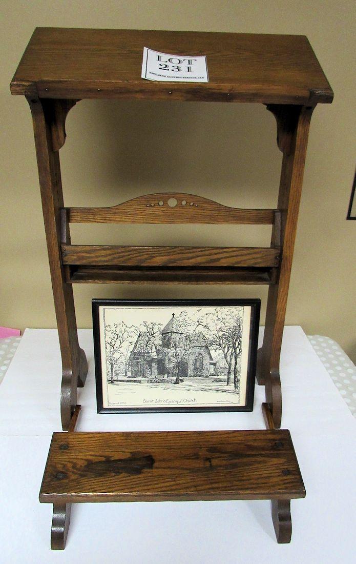 Nice Vintage Oak Church Kneeler and Picture of the Church Where It Came From in Minnesota