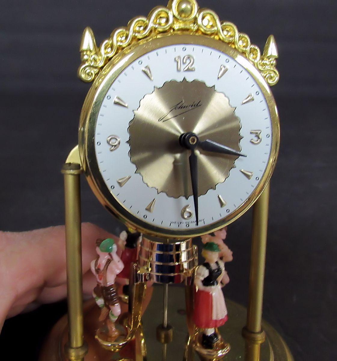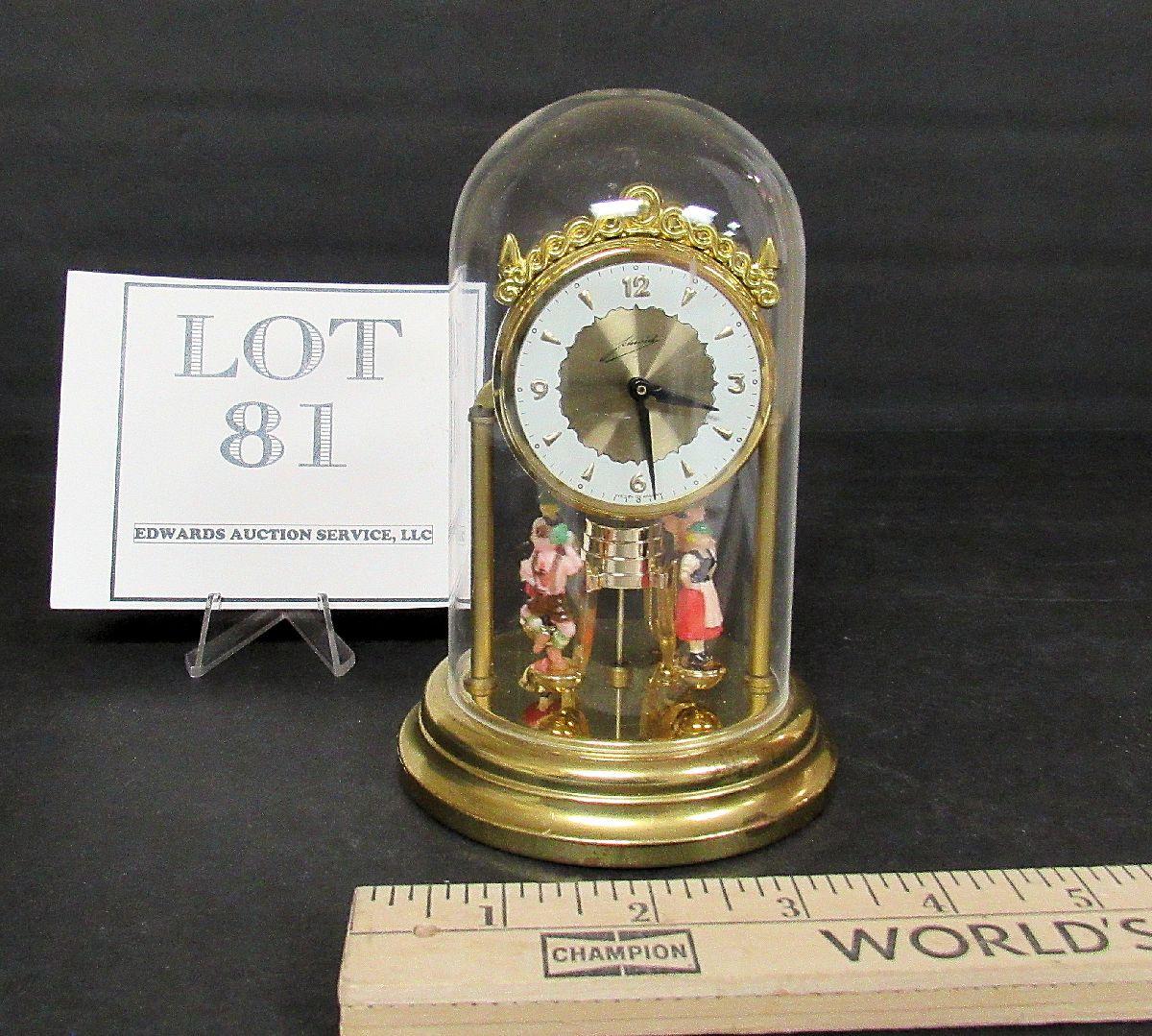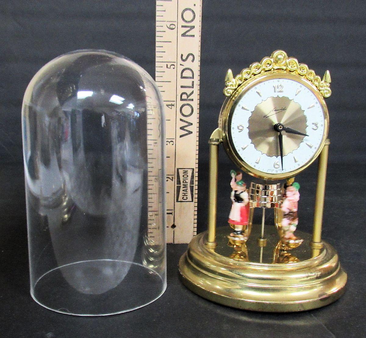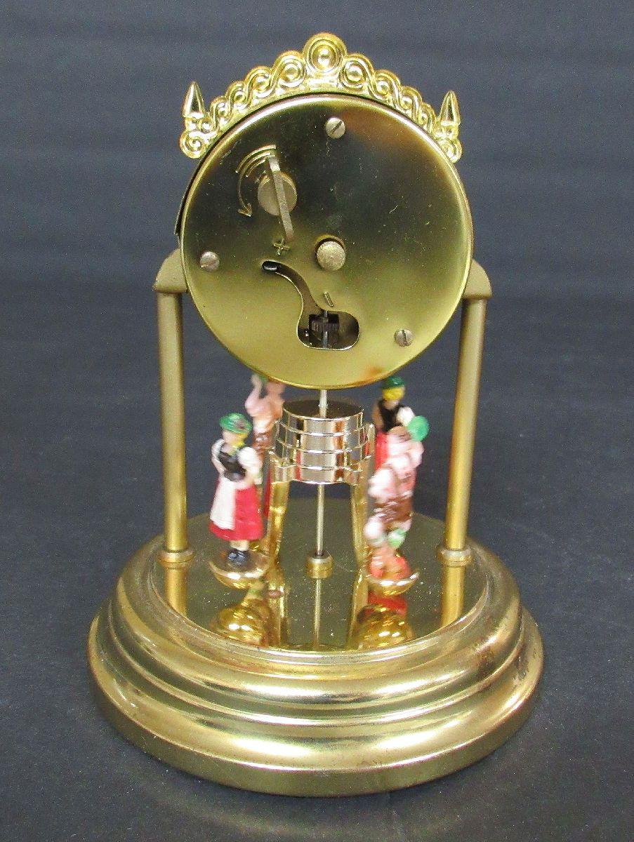 Nice Vintage Schmid West Germany Wind Up Clock With Revolving Figures, Glass Dome, Works