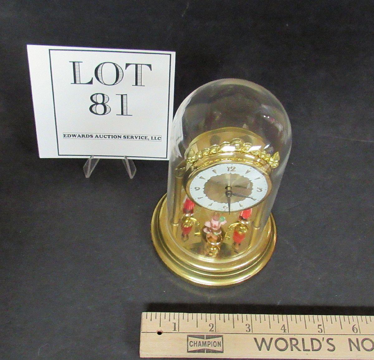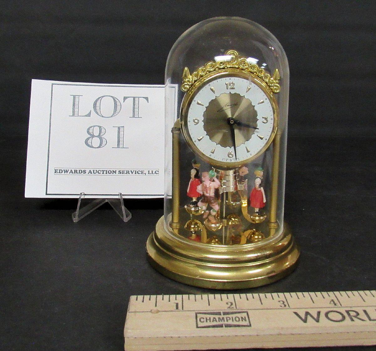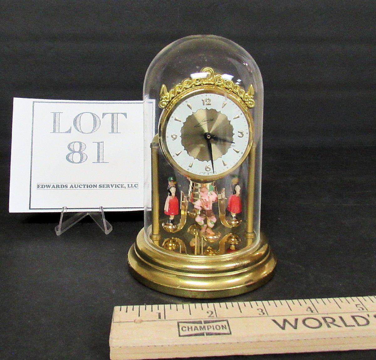 Nice Vintage Schmid West Germany Wind Up Clock With Revolving Figures, Glass Dome, Works