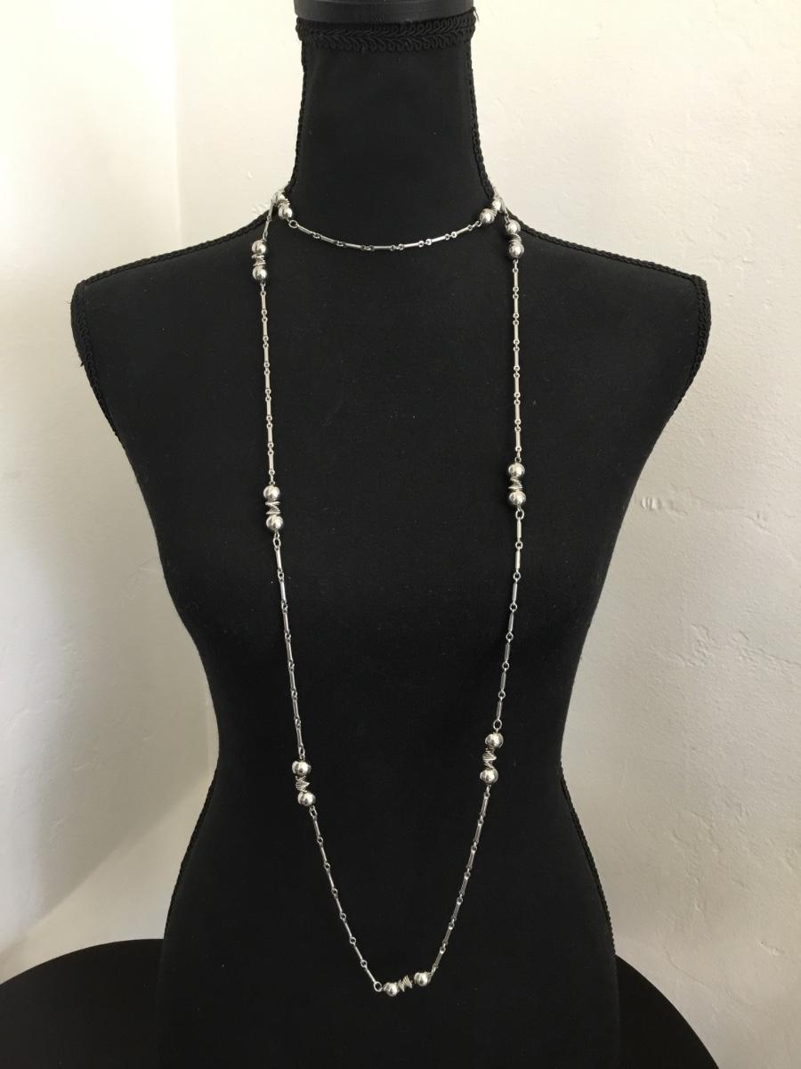 Nice vintage Silver toned, long metal bead, layering necklace