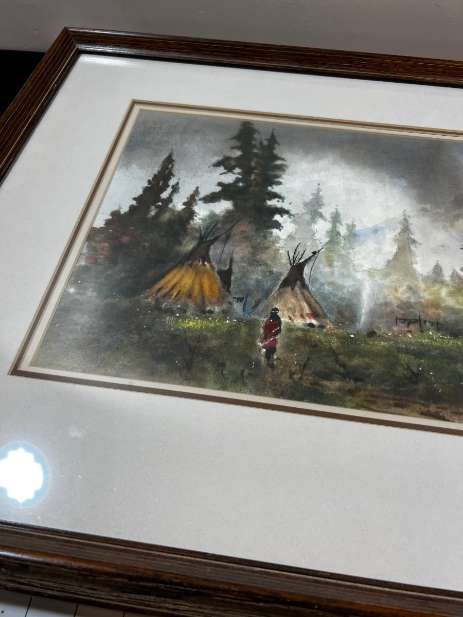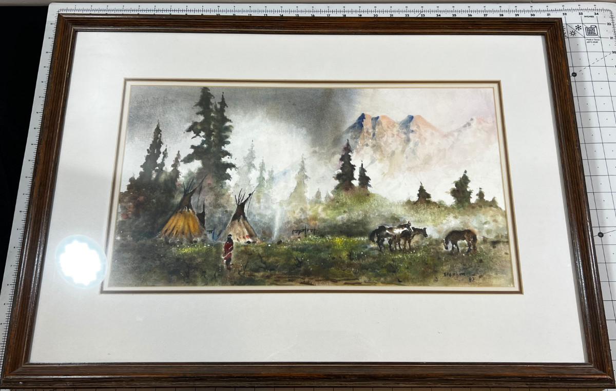 NICE! Water Color by Stephan dated 1982 Native American Tipis