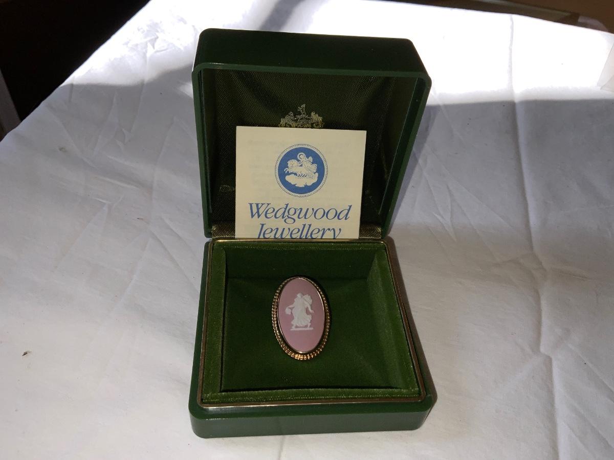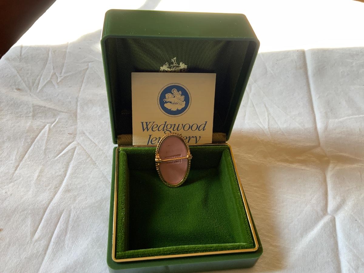 Nice Wedgewood piece! Rococo Style Pink Floral Girl Brooch Jasperware Cameo.. Gold Plated.