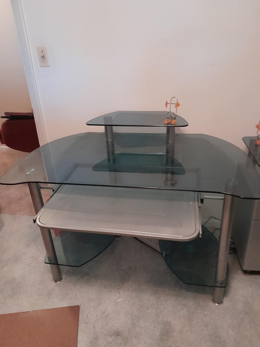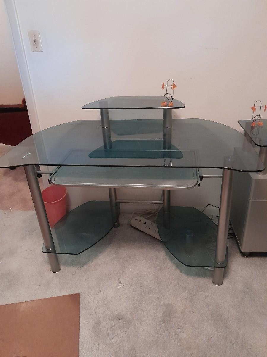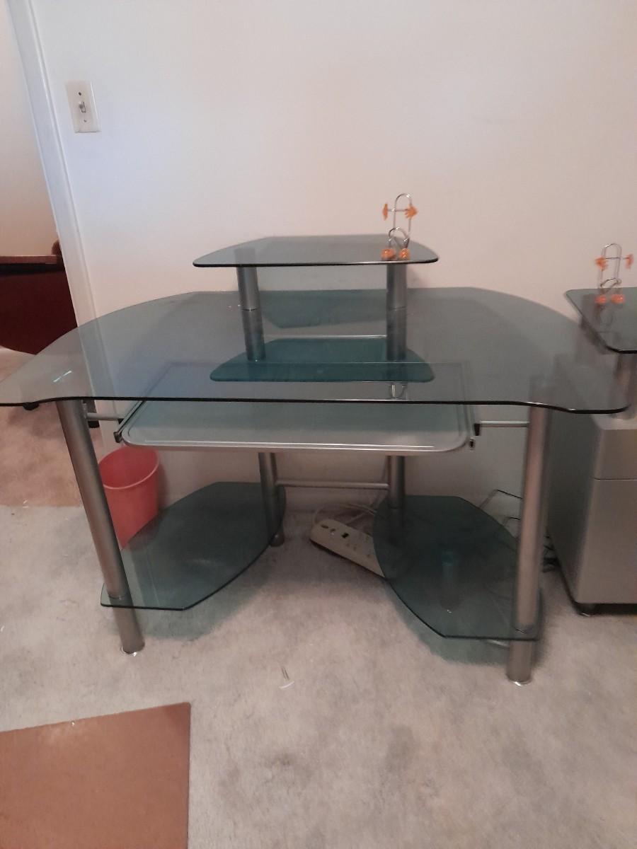 NICE Z-LINE METAL FRAMED; TEMPERED GLASS TOPPED DESK 46" X 27" (does not include phone holder on top)