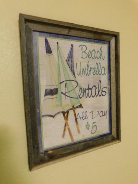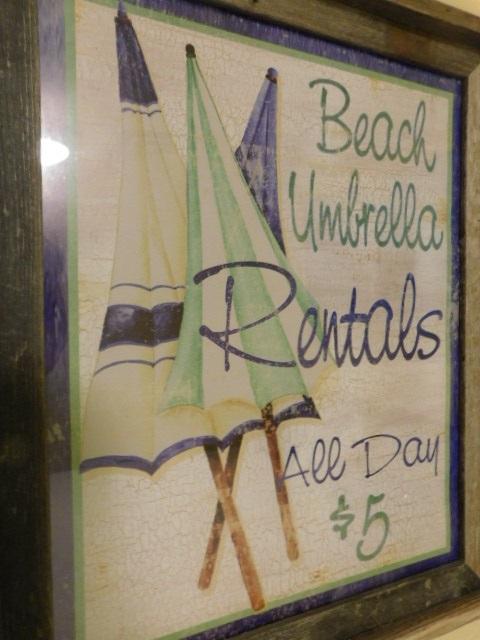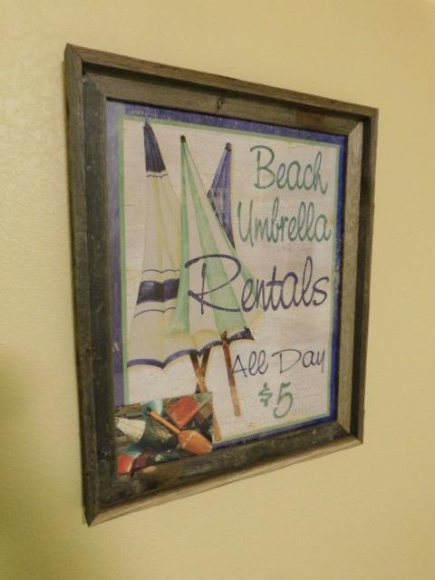 Nicely Framed Beach Umbrella Rental Novelty Picture 18"x22"