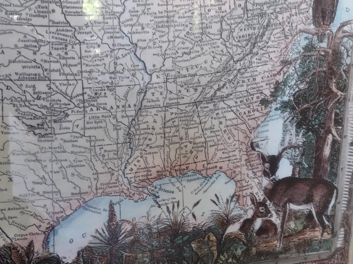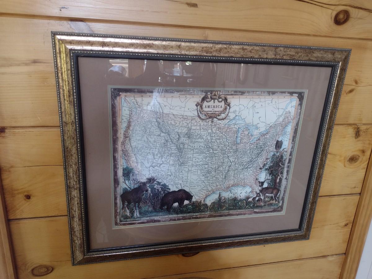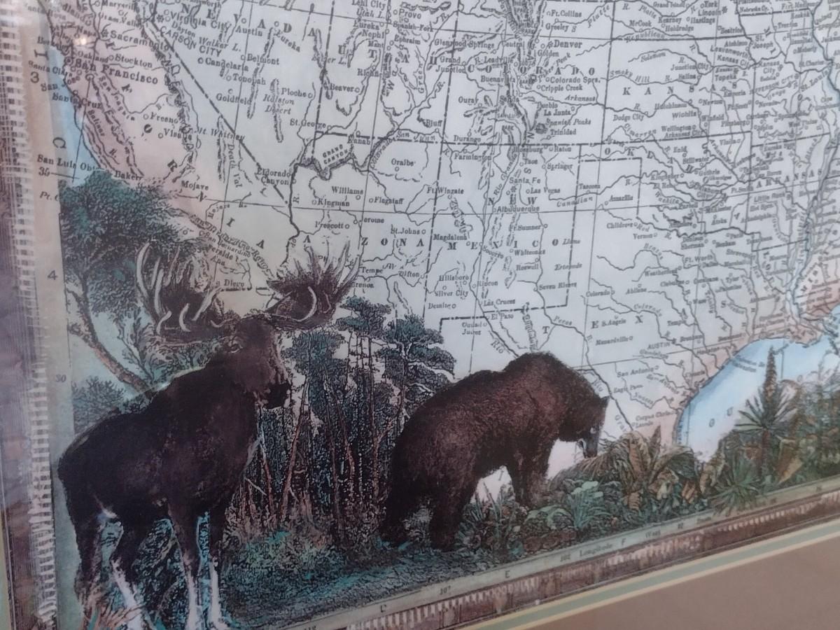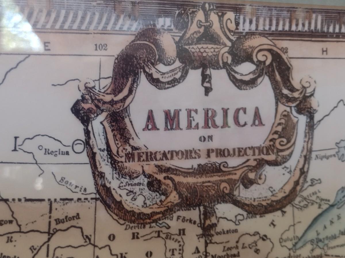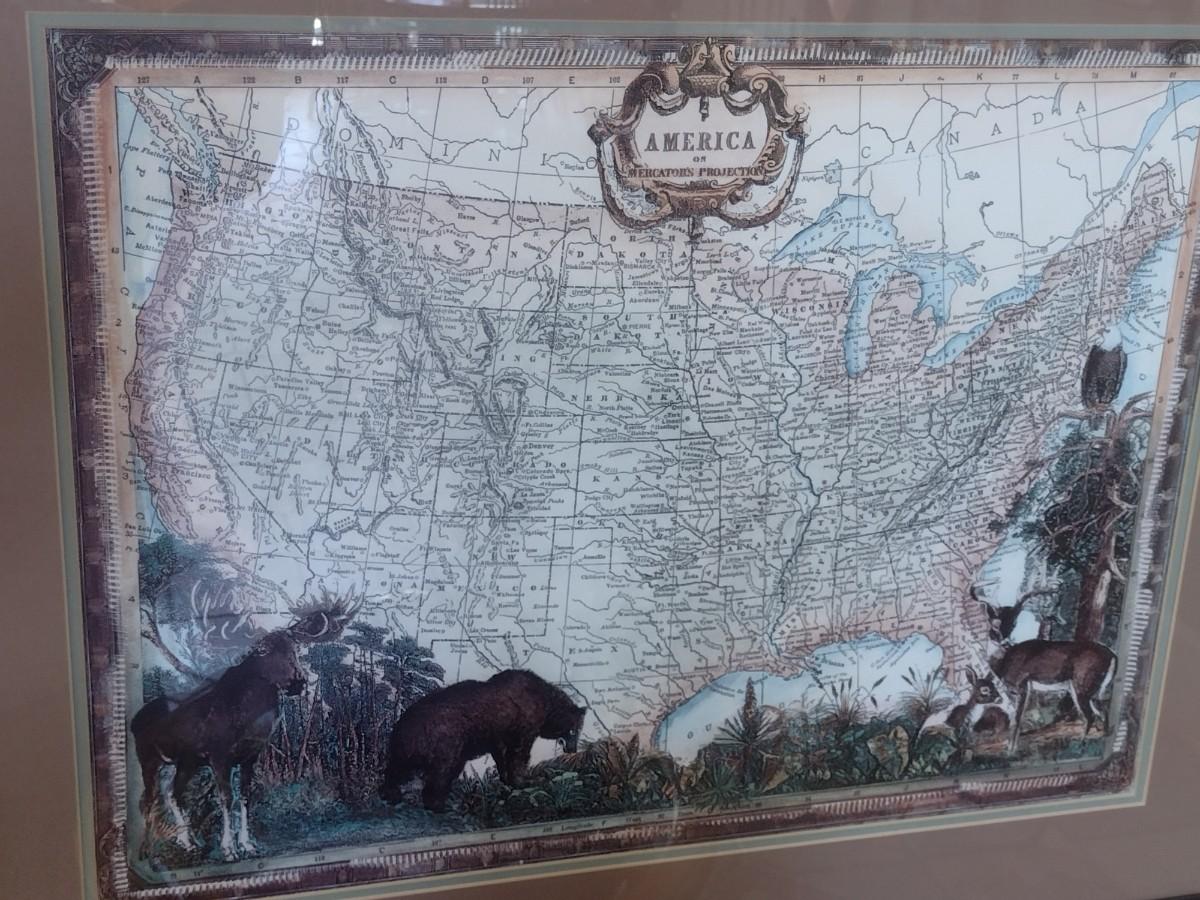 Nicely Framed Wildlife Themed 'America of Mercator's Projection'