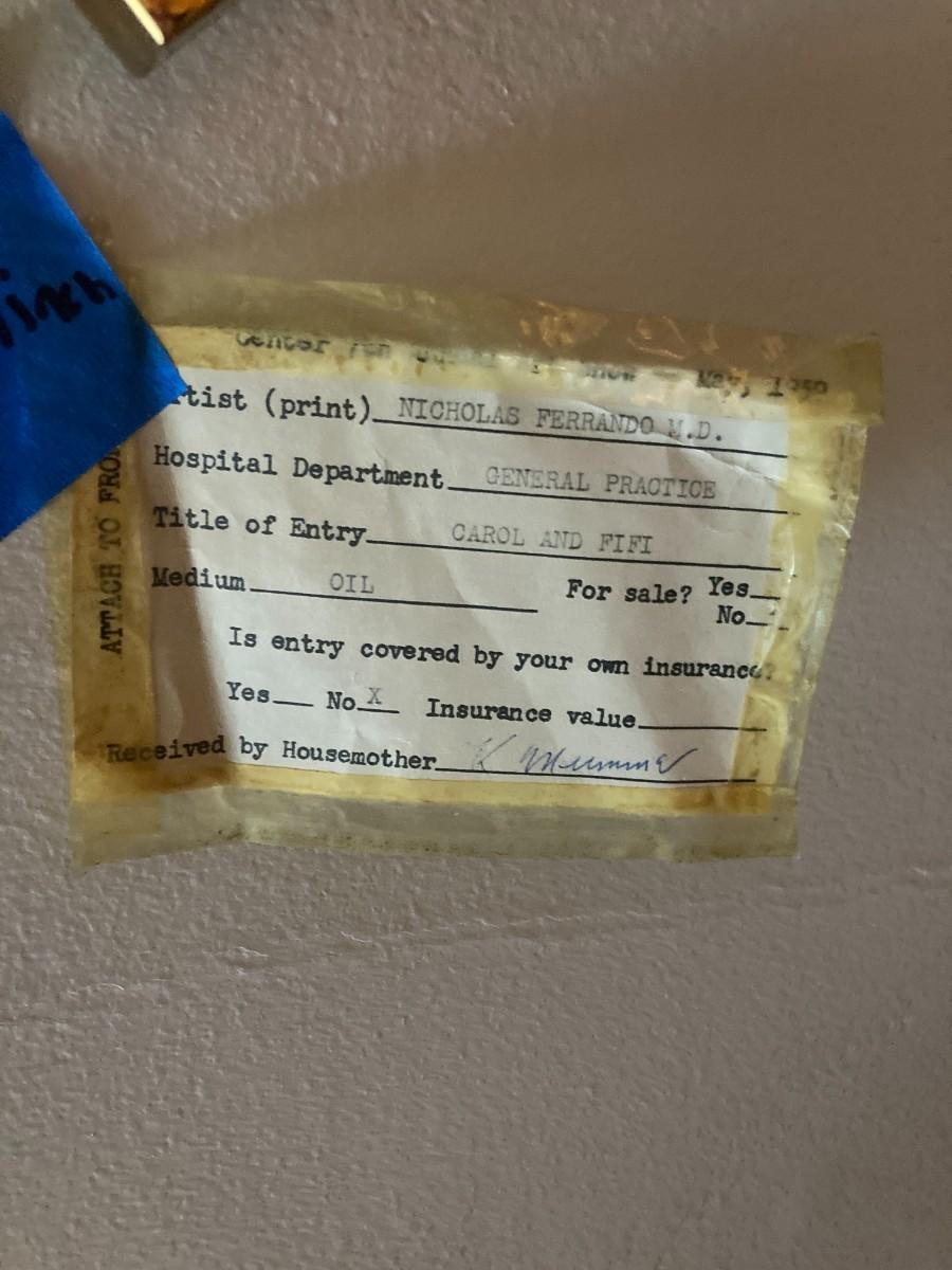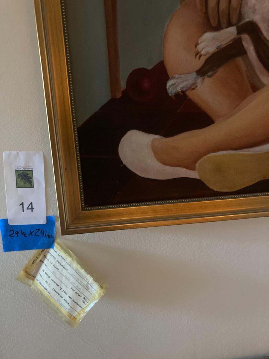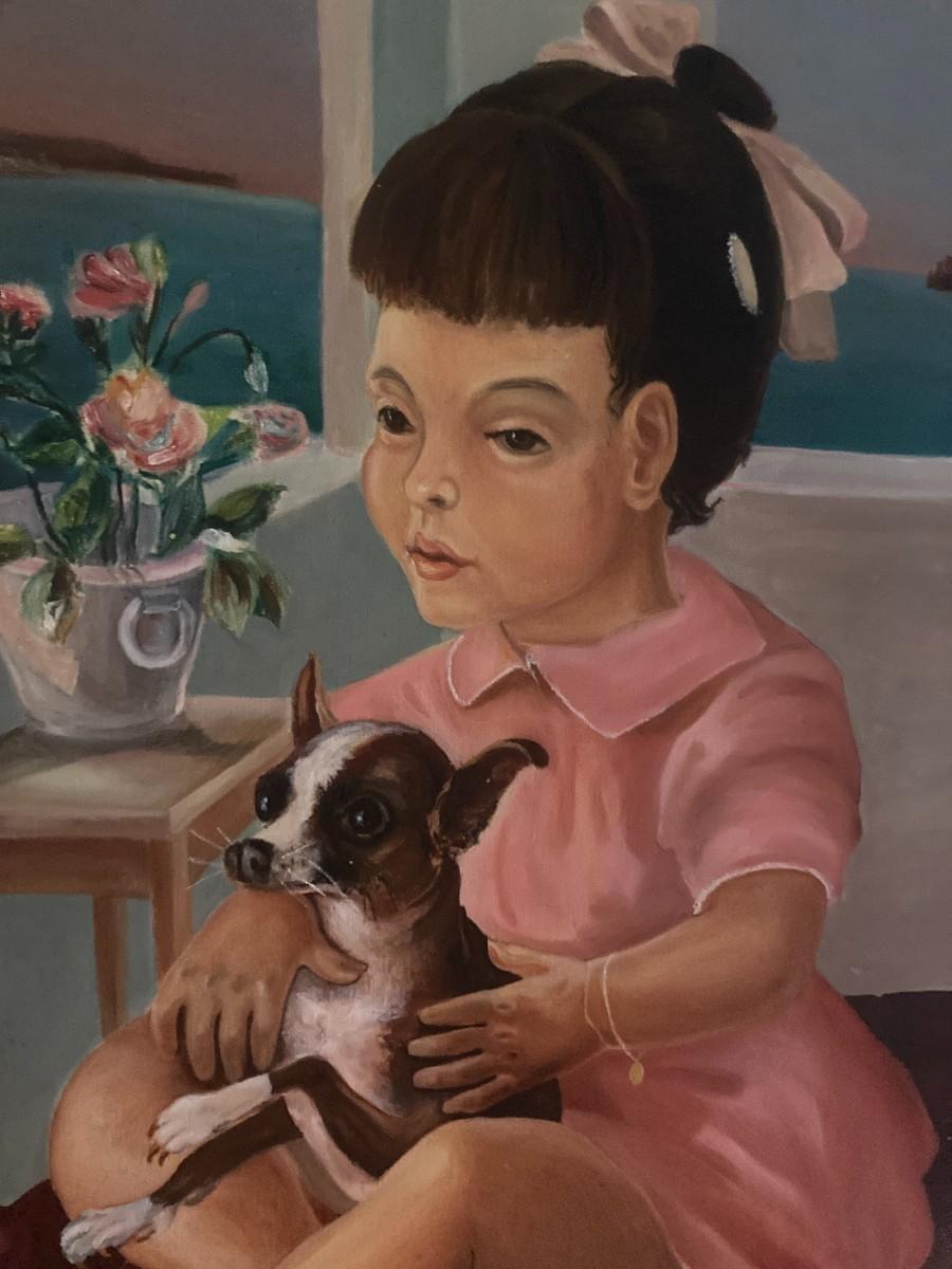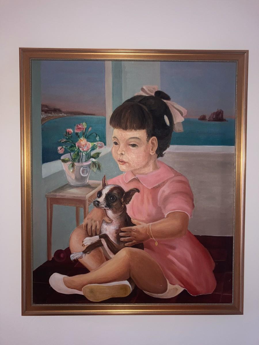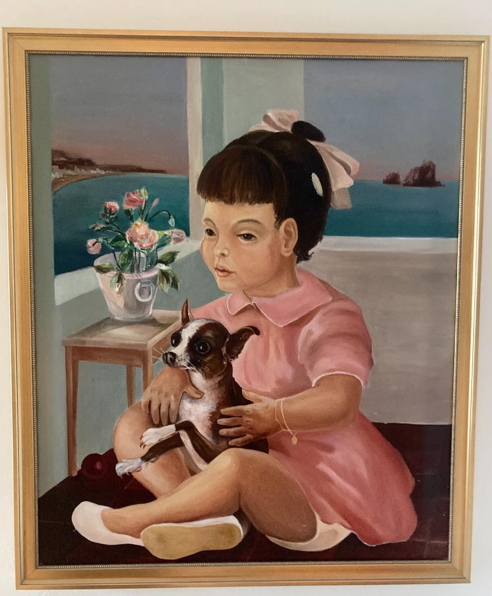 "Carol and Fifi" Oil on canvas 29 1/2 x 24 inches; Framed. Appraised at $200