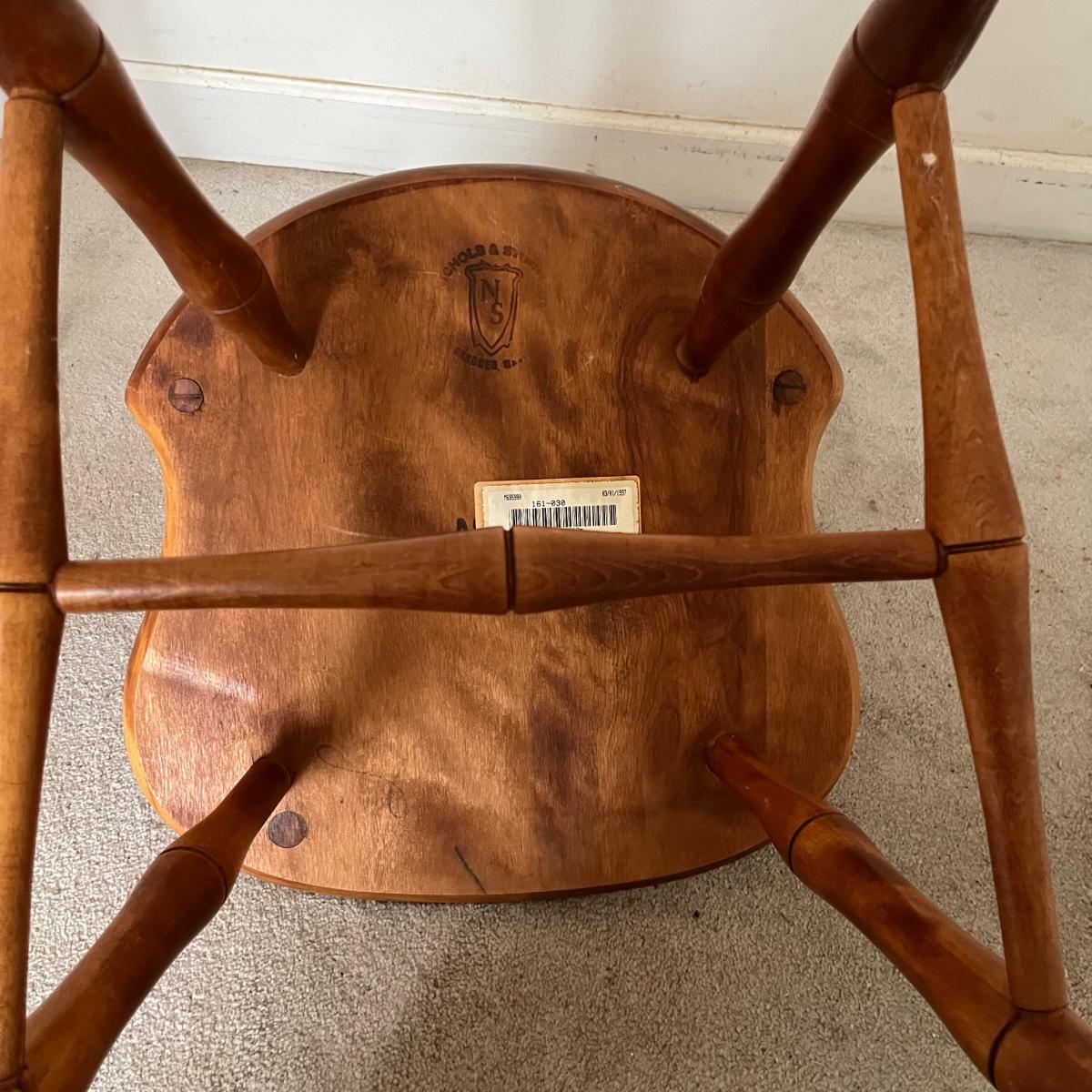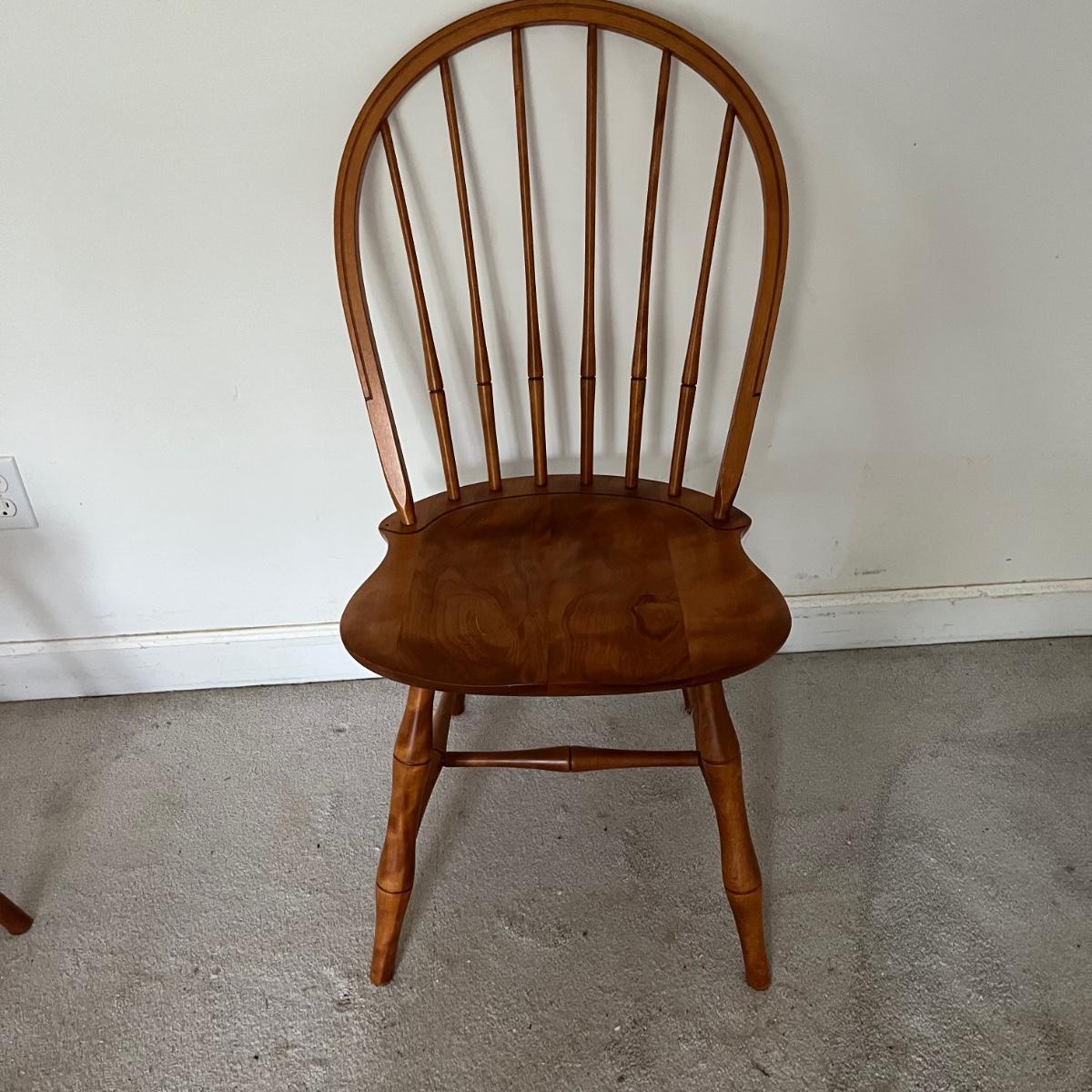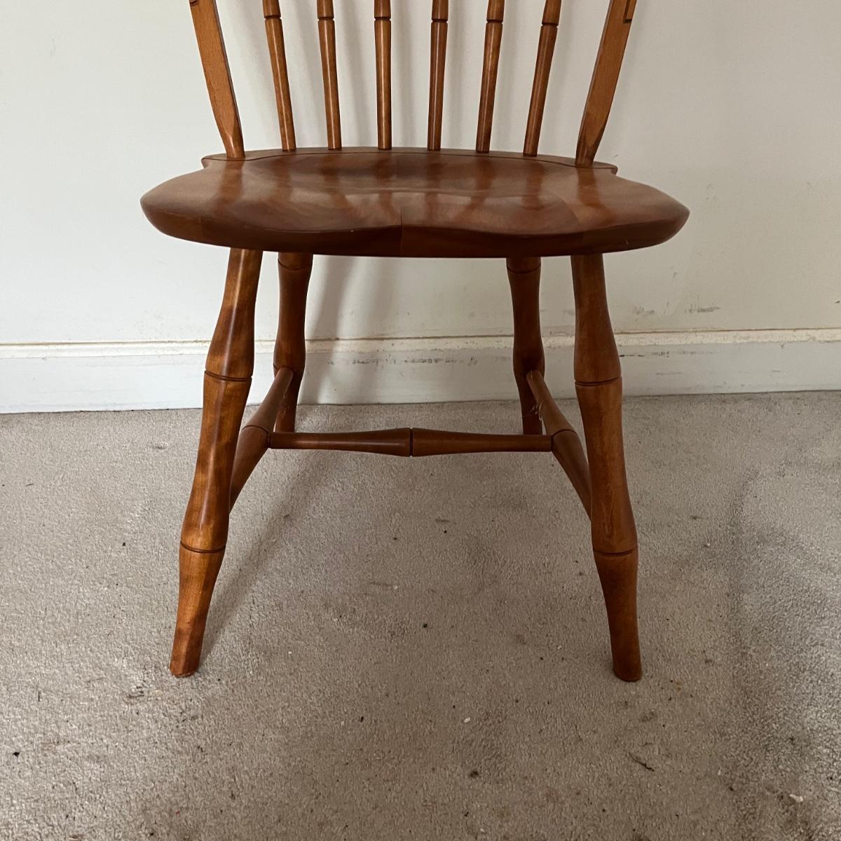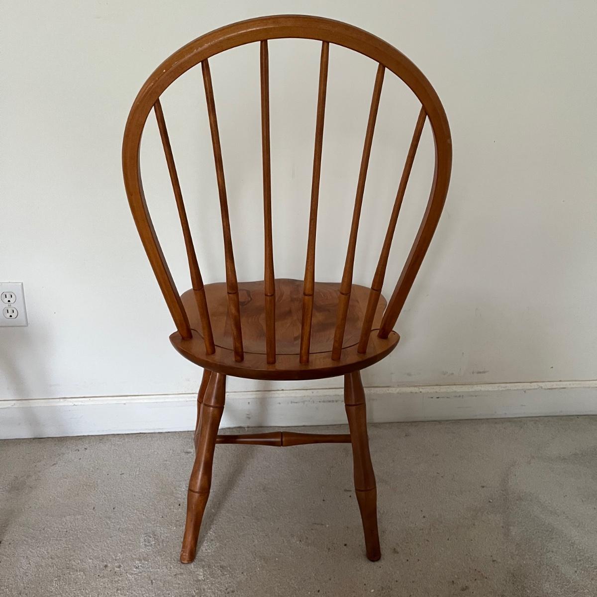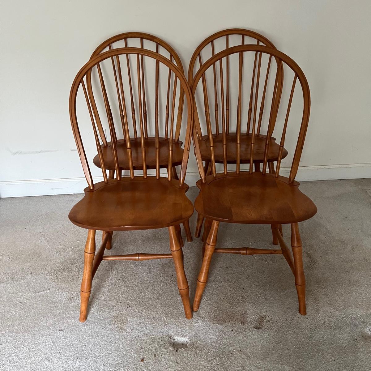 Lot includes four Nichols and Stone spindle back chairs. Chairs measure 18” x 20” x 36” with a seat height of 17.5.