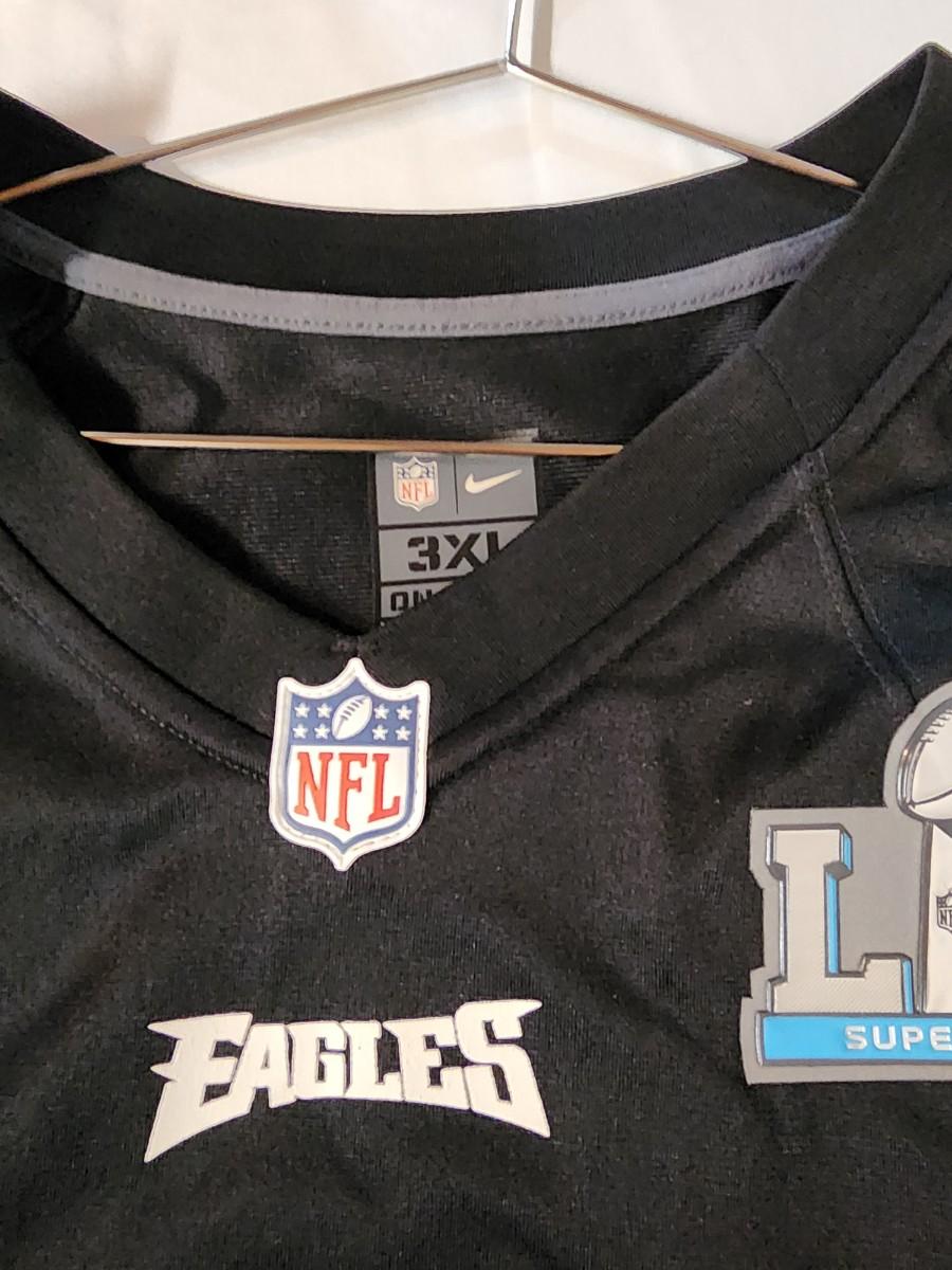 The product is a Nick Foles #9 Philadelphia Eagles 2018 Super Bowl LII 3XL Men's Jersey in black, officially licensed by Nike. This jersey represents the iconic moment when Nick Foles led the Eagles to victory in the Super Bowl, making it a coveted item for fans of the team. With the player's name and number prominently displayed, this jersey is perfect for showing support for the Philadelphia Eagles and celebrating the team's success in the big game.