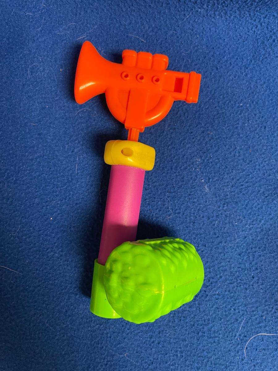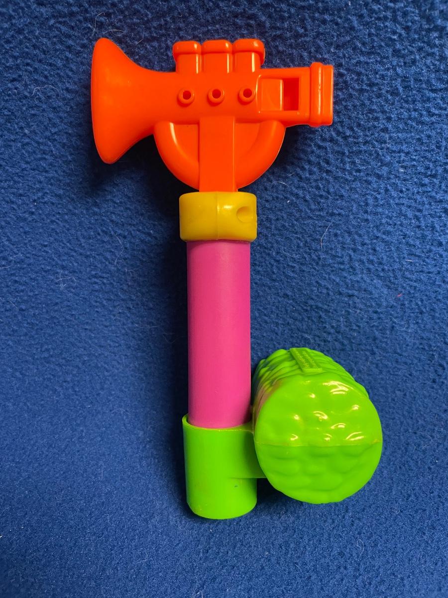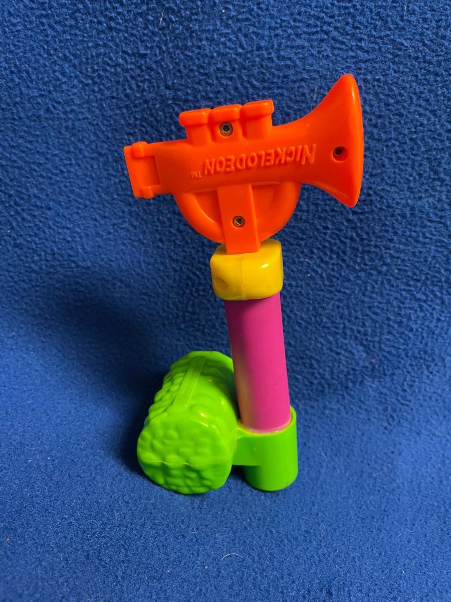 Vintage 1992 McDonalds Nickelodeon toy, can be filled with water and squirted by sliding the trumpet handle in and out.