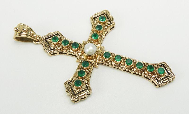 Nicky Butler Green Gemstone Gold Tone Cross Pendant