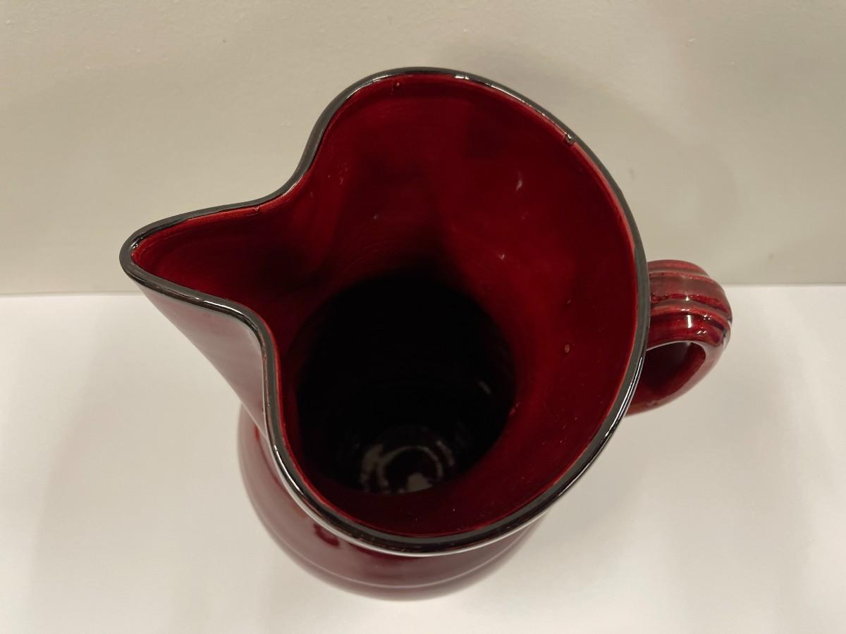 Vintage red ceramic pottery pitcher by Nicola Fasano. Excellent condition. 11" tall. # 975