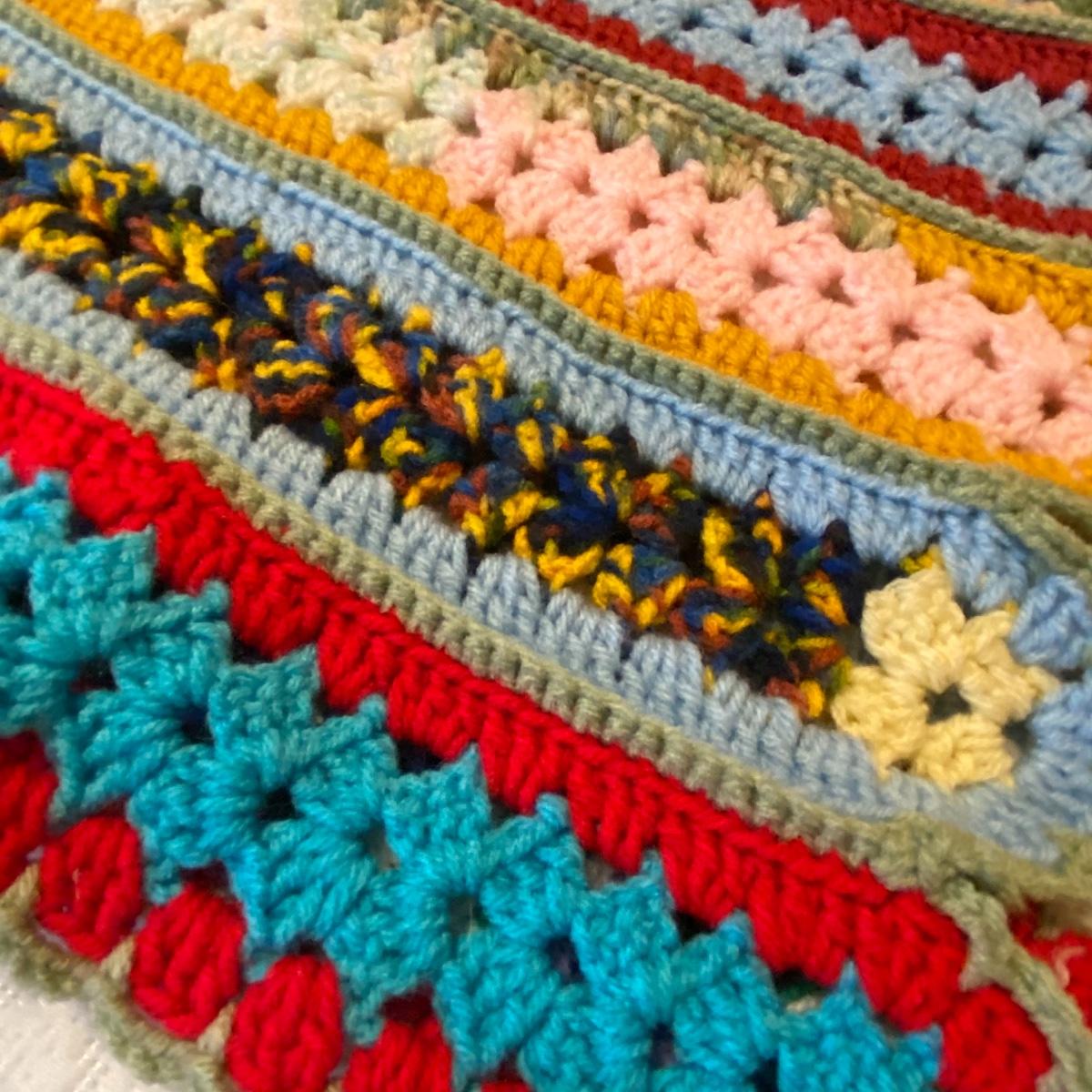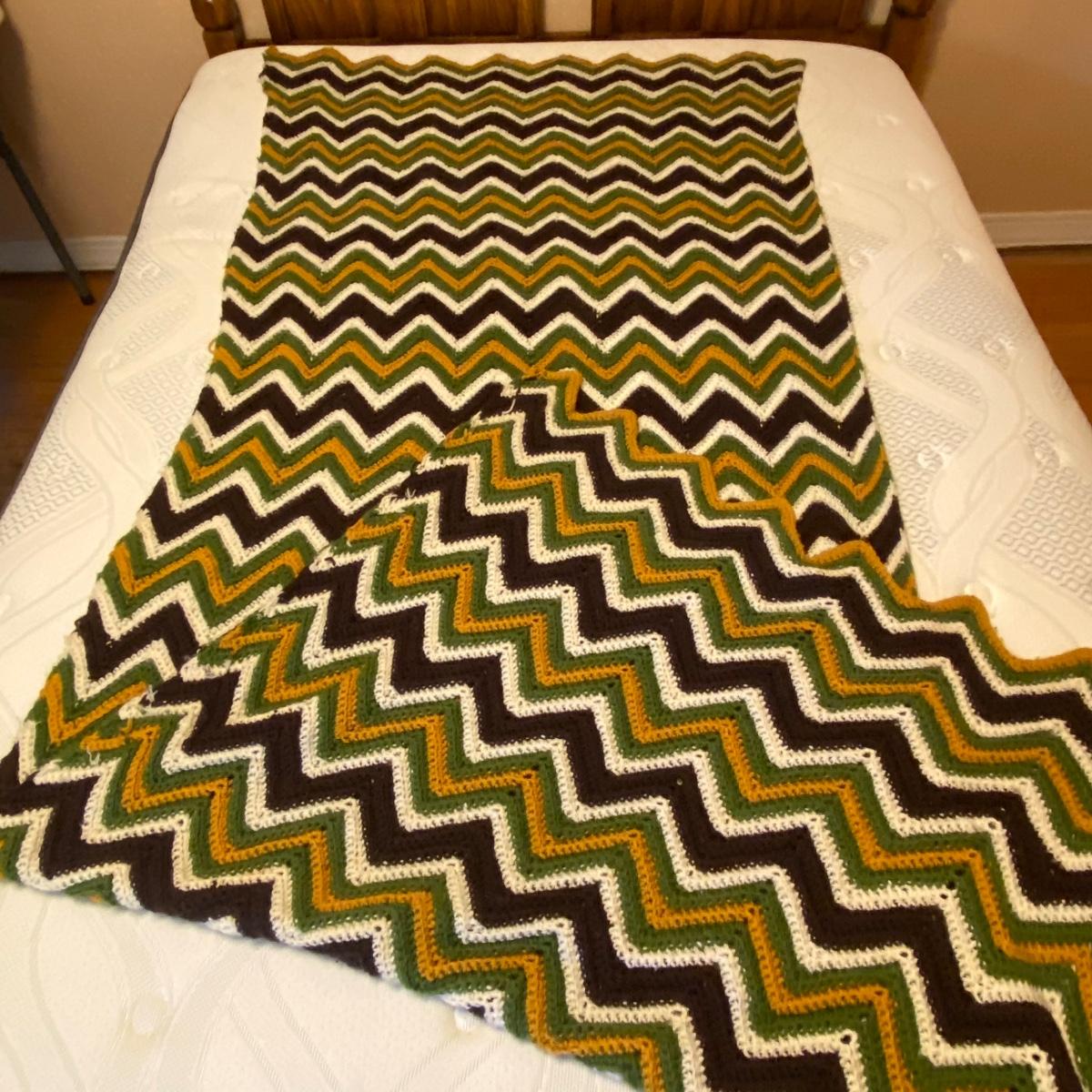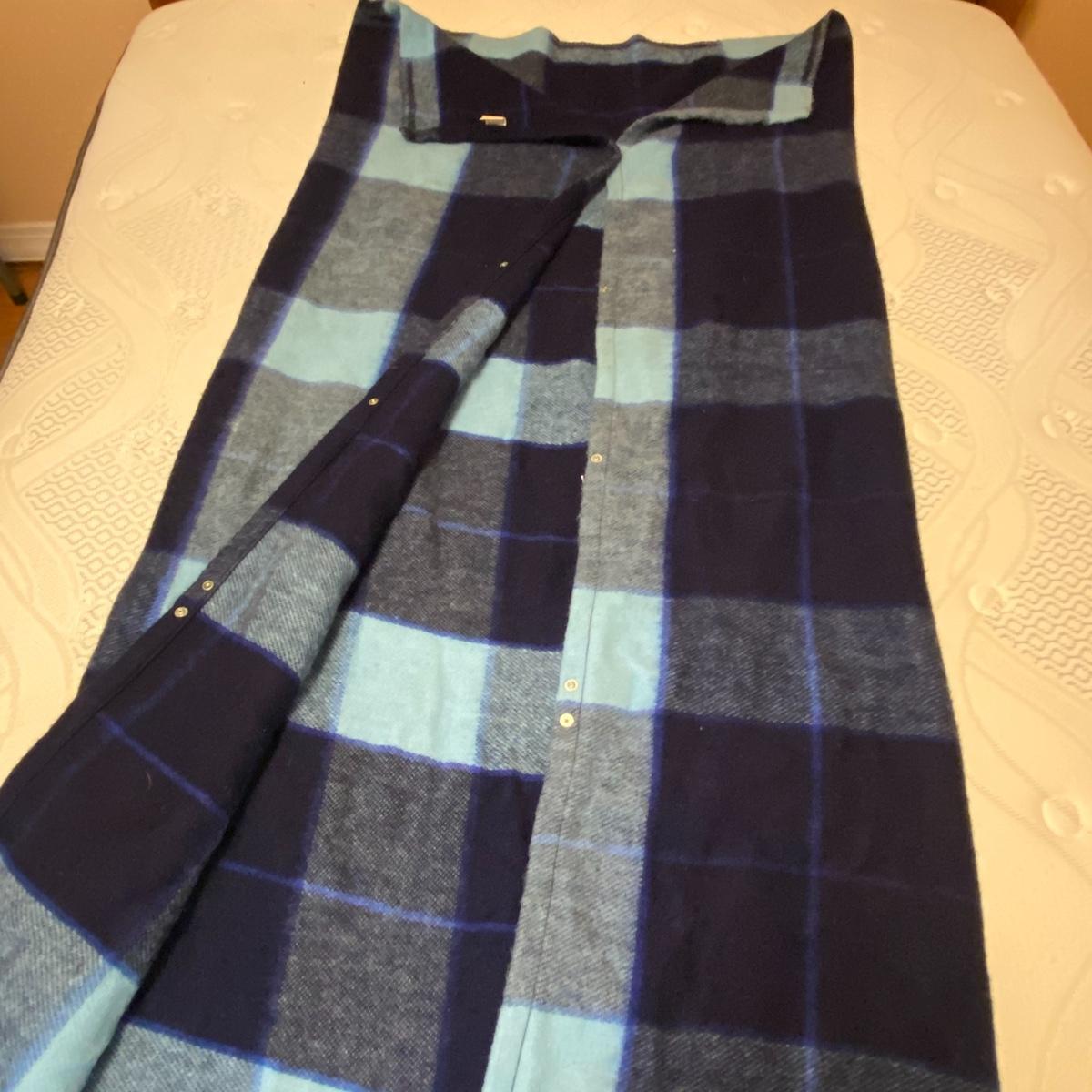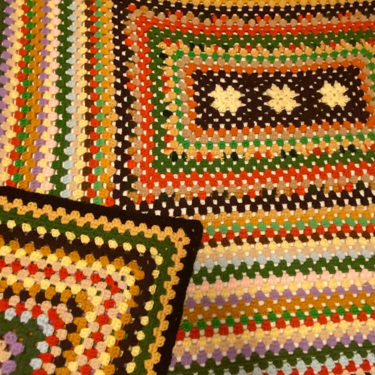 Lot includes two plaid cozies that snap up and resemble a sleeping bag. Lot also includes crocheted blankets with many different colors and patterns. See photos for details. Shipping available