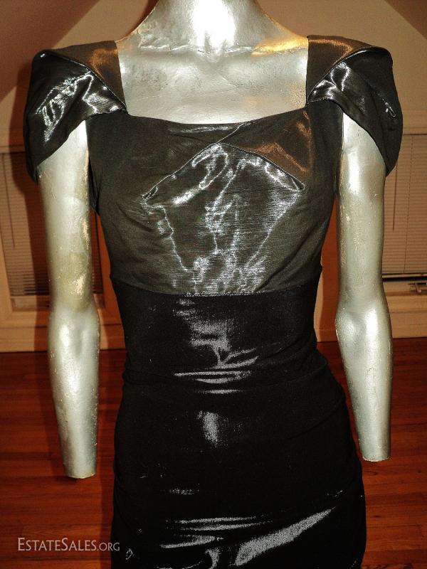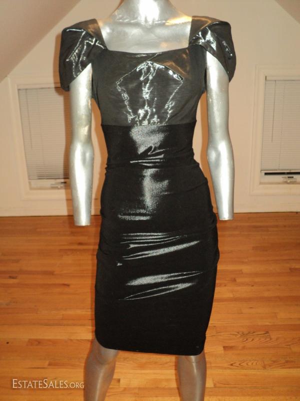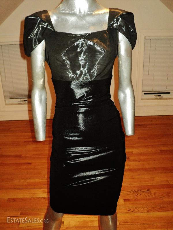 Beautiful Metallic lame' body con dress by Nicole Miller collection line.