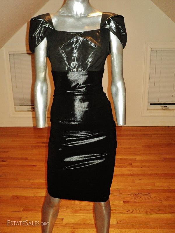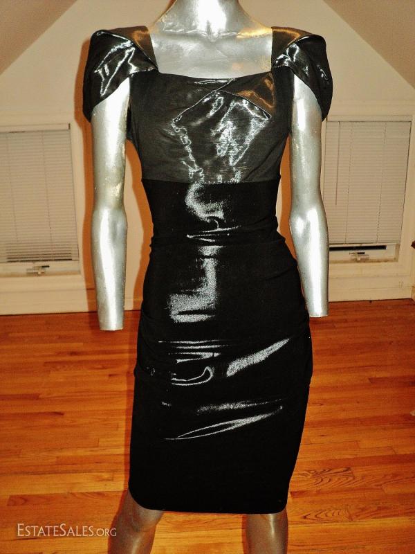 Beautiful Metallic lame' body con dress by Nicole Miller collection line.