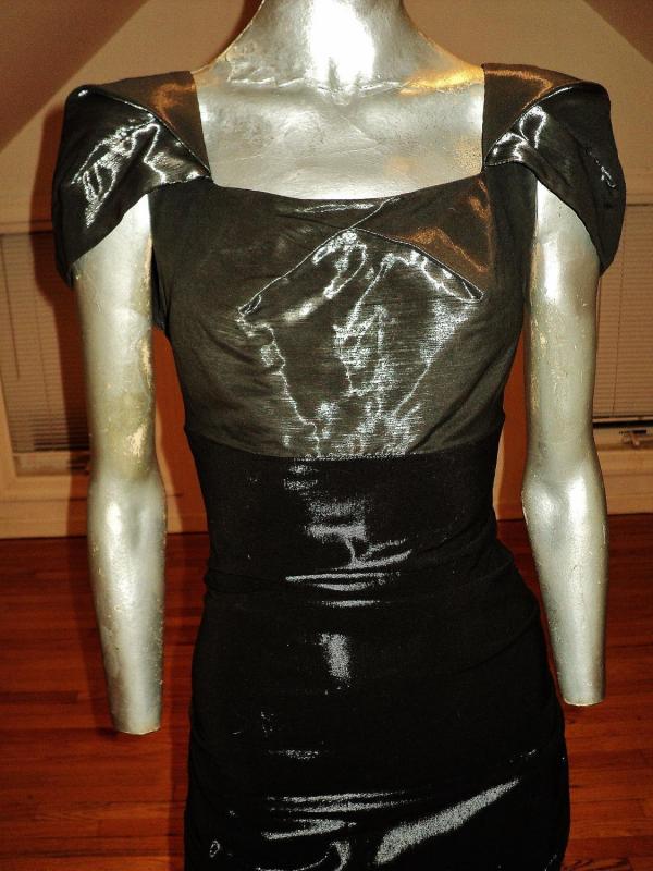 Beautiful Metallic lame' body con dress by Nicole Miller collection line.
