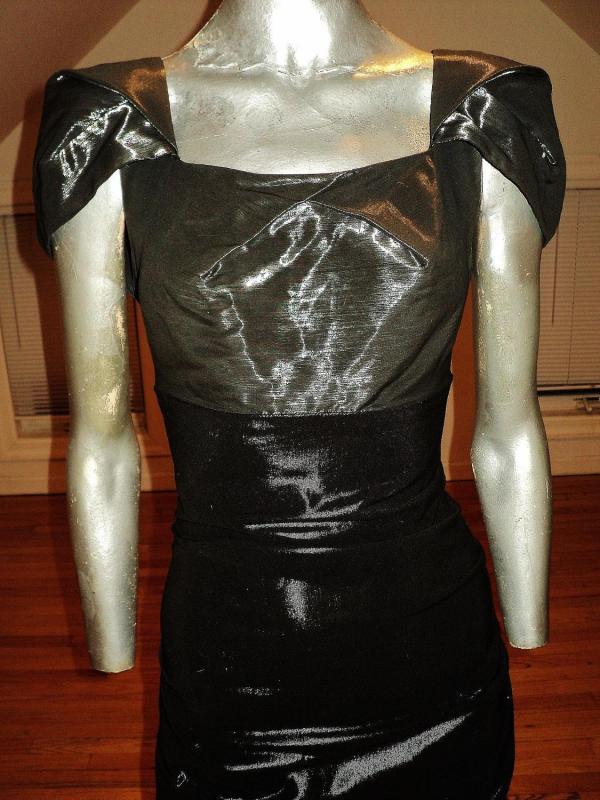 Beautiful Metallic lame' body con dress by Nicole Miller collection line.