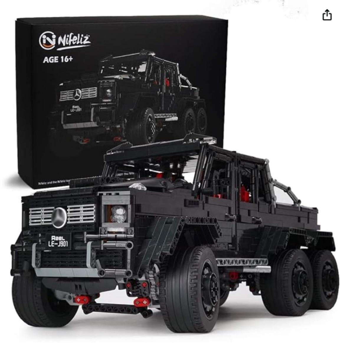 Nifeliz Black Pickup G63 scale 1:8 (Lego style bricks) detailed V8 engine