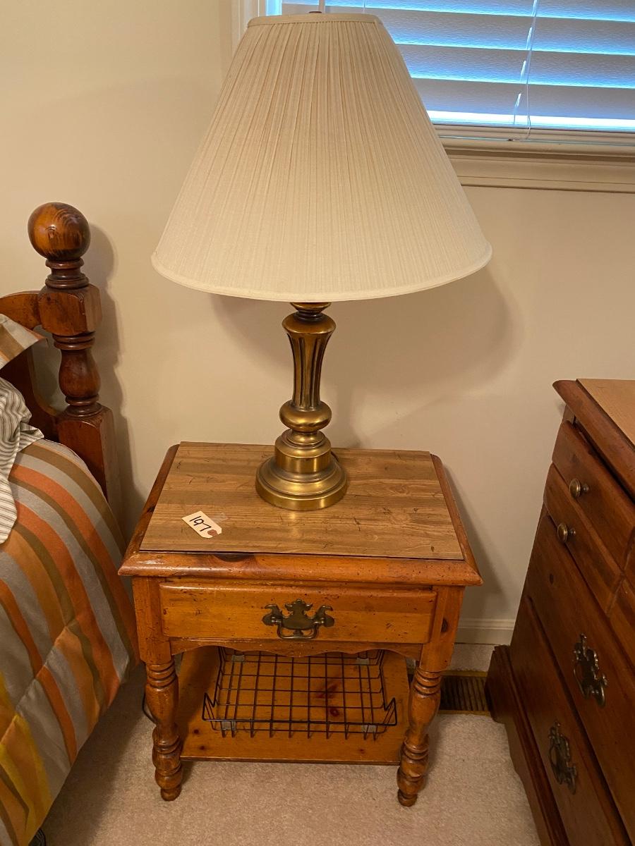 Brass Lamp and 1 Drawer Night Stand As Pictured
