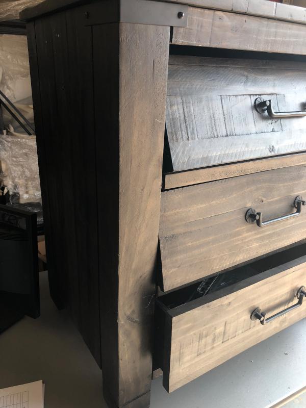 Needs repair, drawer slides are loose. 30" by 18" by 30"