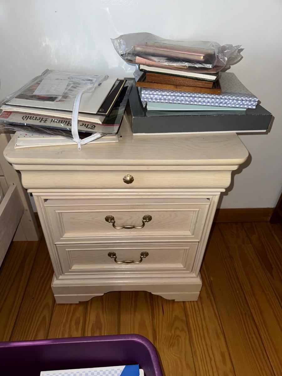 2 night tables, cream color, I also have a matching king size bed and dresser to go with it