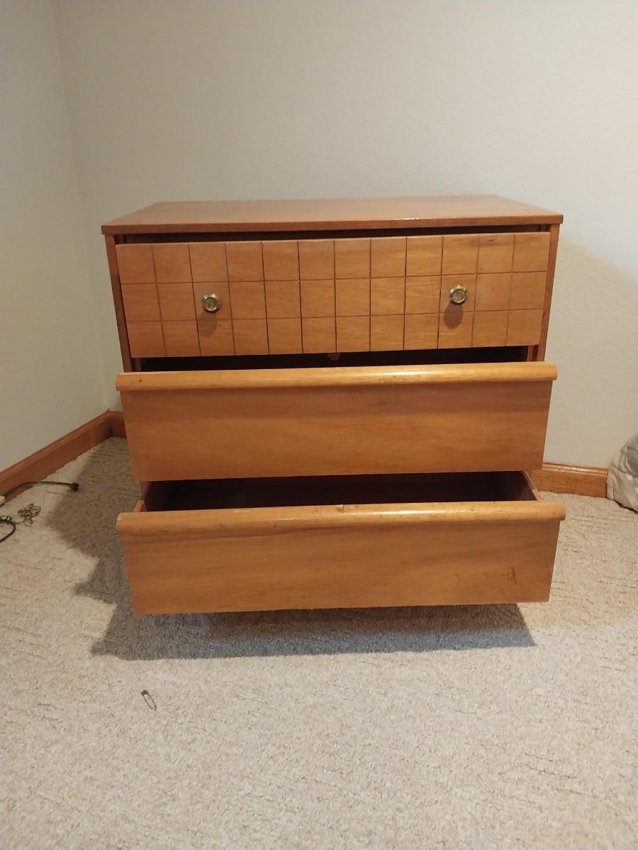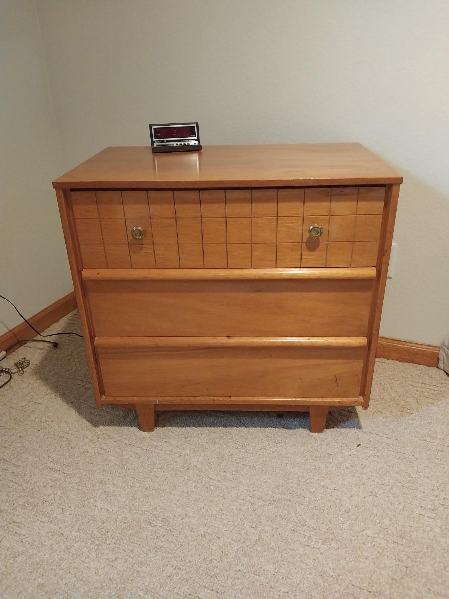 MID CENTURY MODERN NIGHTSTAND AND SPARTUS ALARM CLOCK