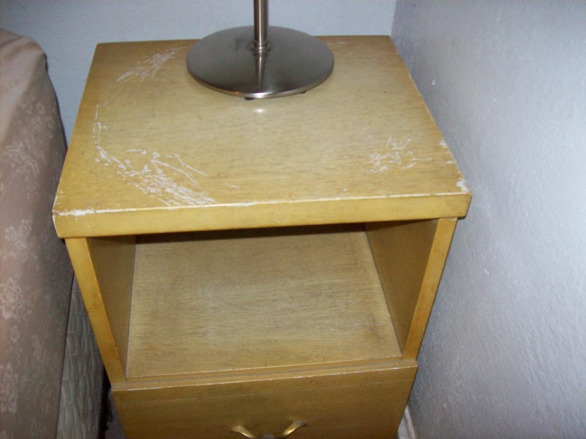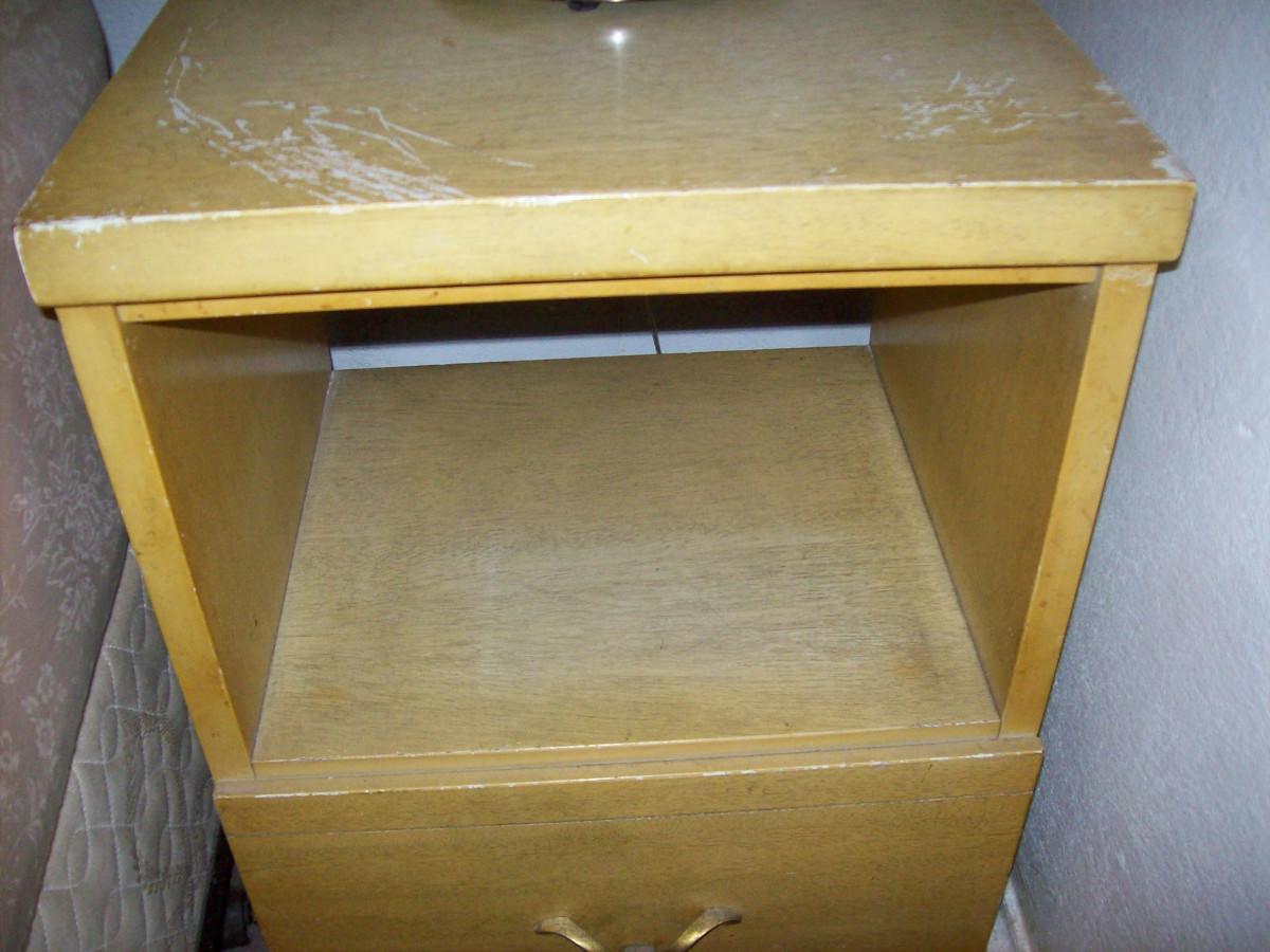 nightstand, side table w drawer solid wood, some scratches on exterior, interior is in excellent clean condition