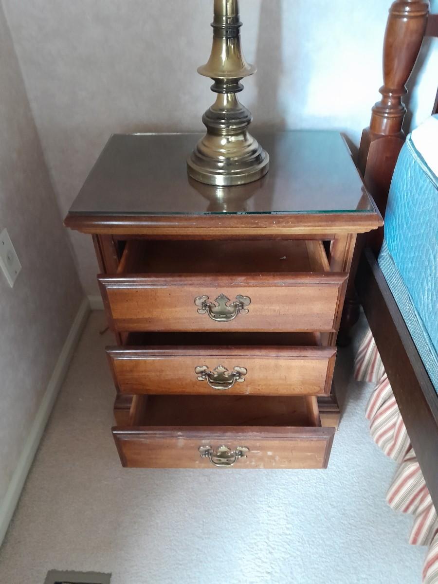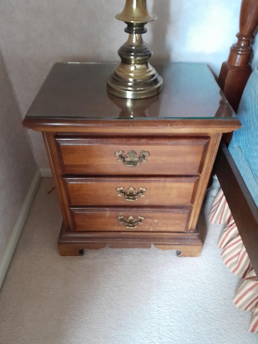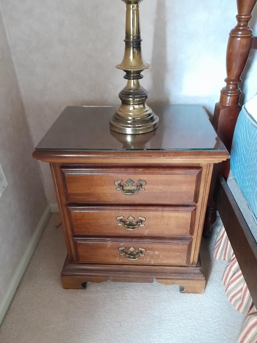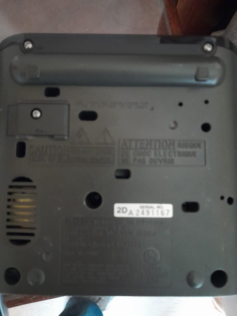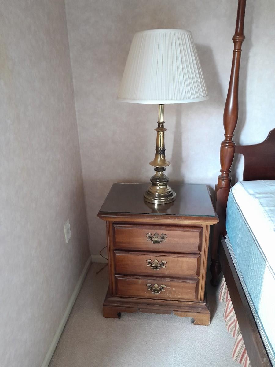 NIGHTSTAND 25" X 22" X 15" WITH A 30" TALL LAMP AND A SONY DREAM MACHINE ALARM CLOCK