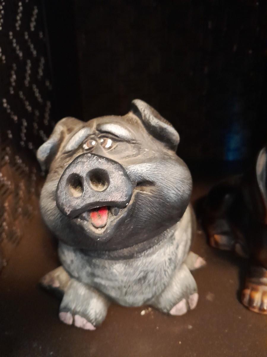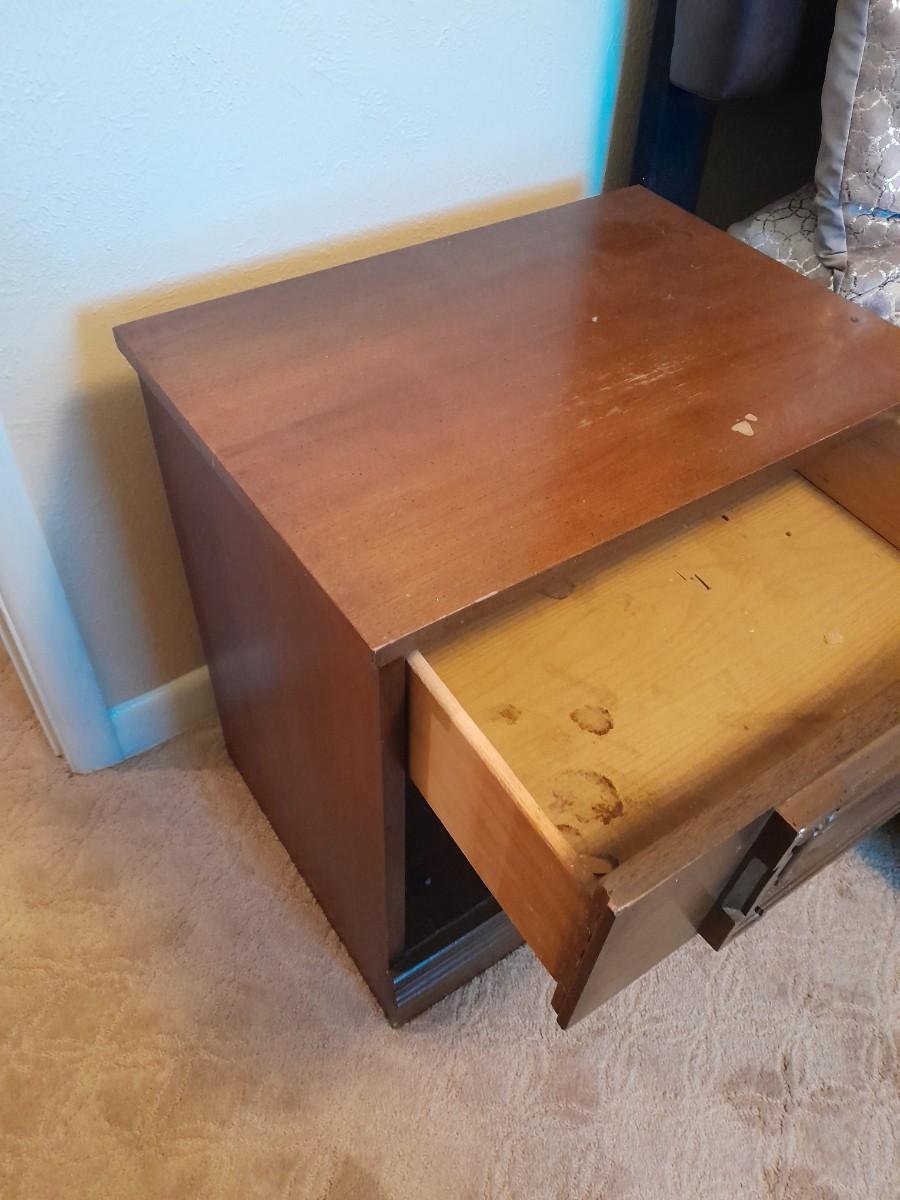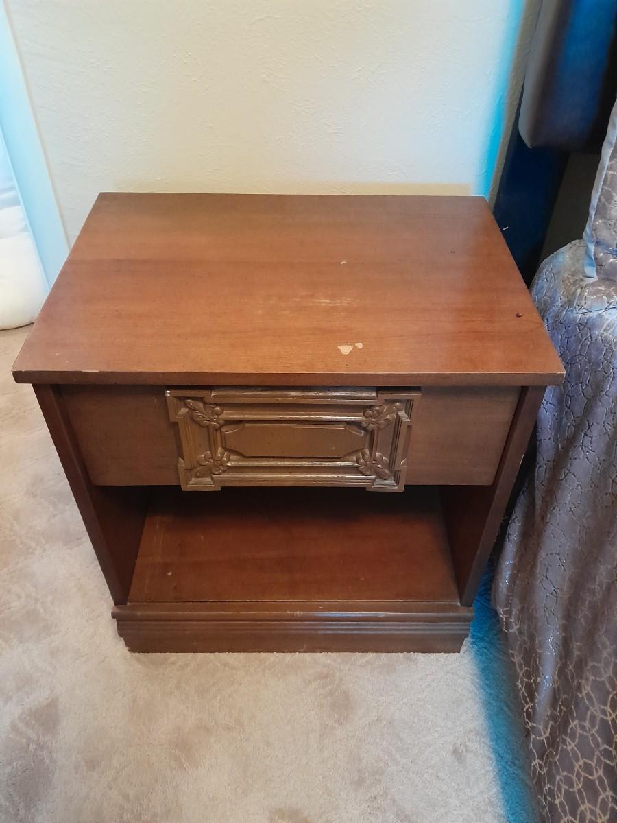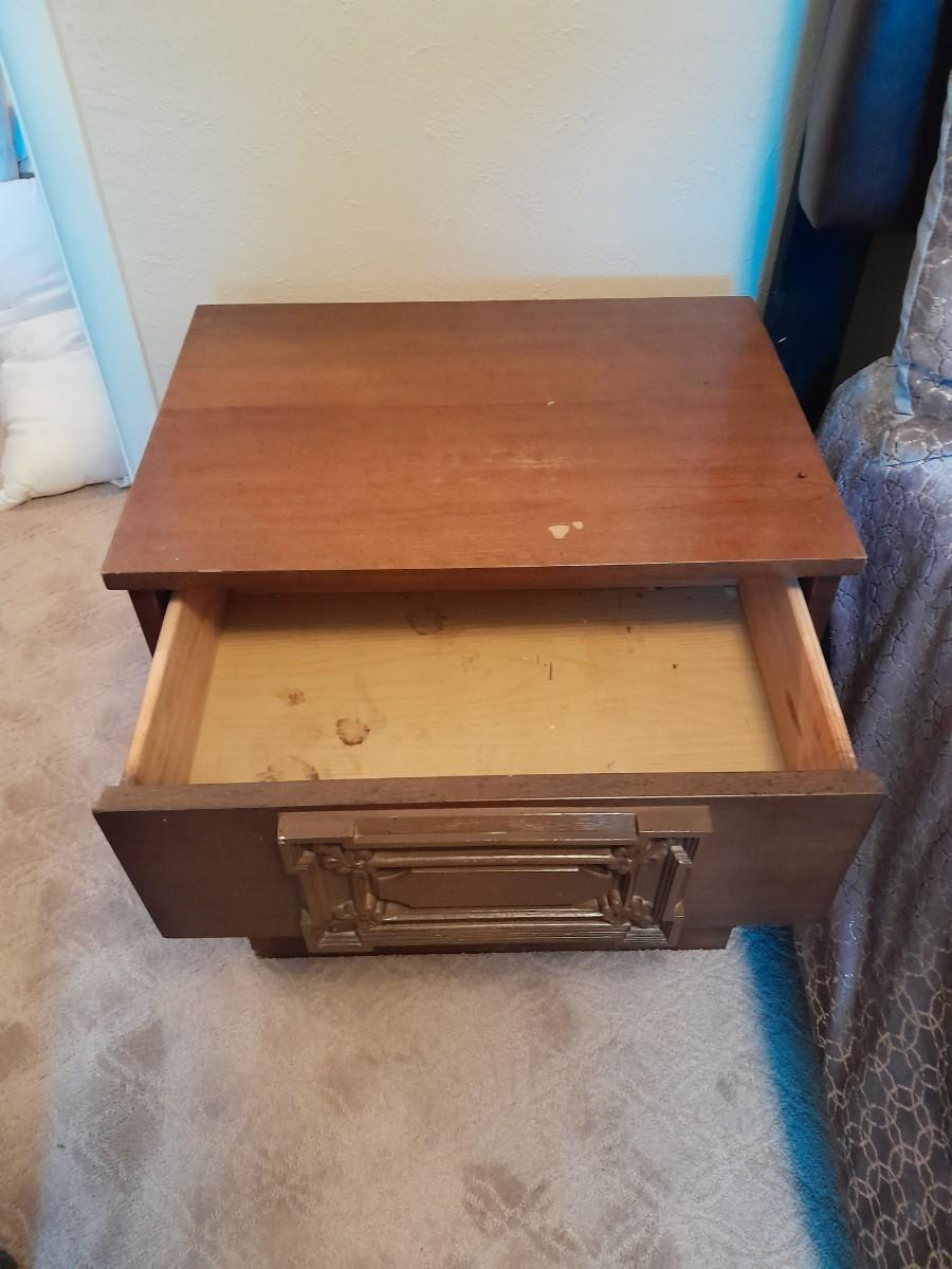 NIGHTSTAND 23.5" X 22" X 16" WITH SMALL SHELF 28" X 10" X 11" WITH DECORATIVE ANIMAL FIGURES