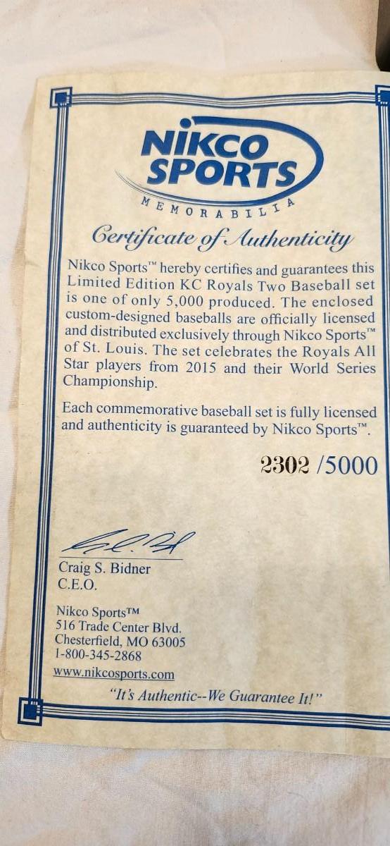 Nikco Sports Limited Edition KC Royals Two Baseball set 2015 2302/5000