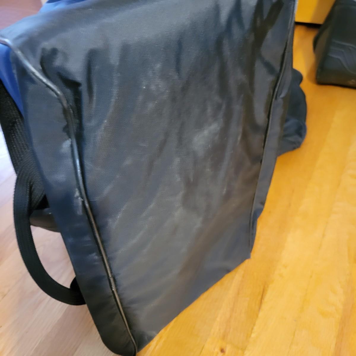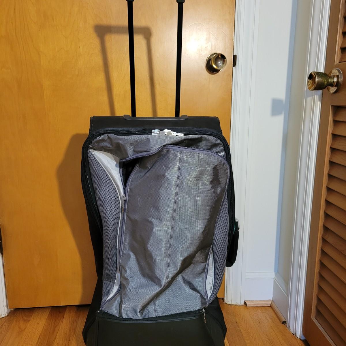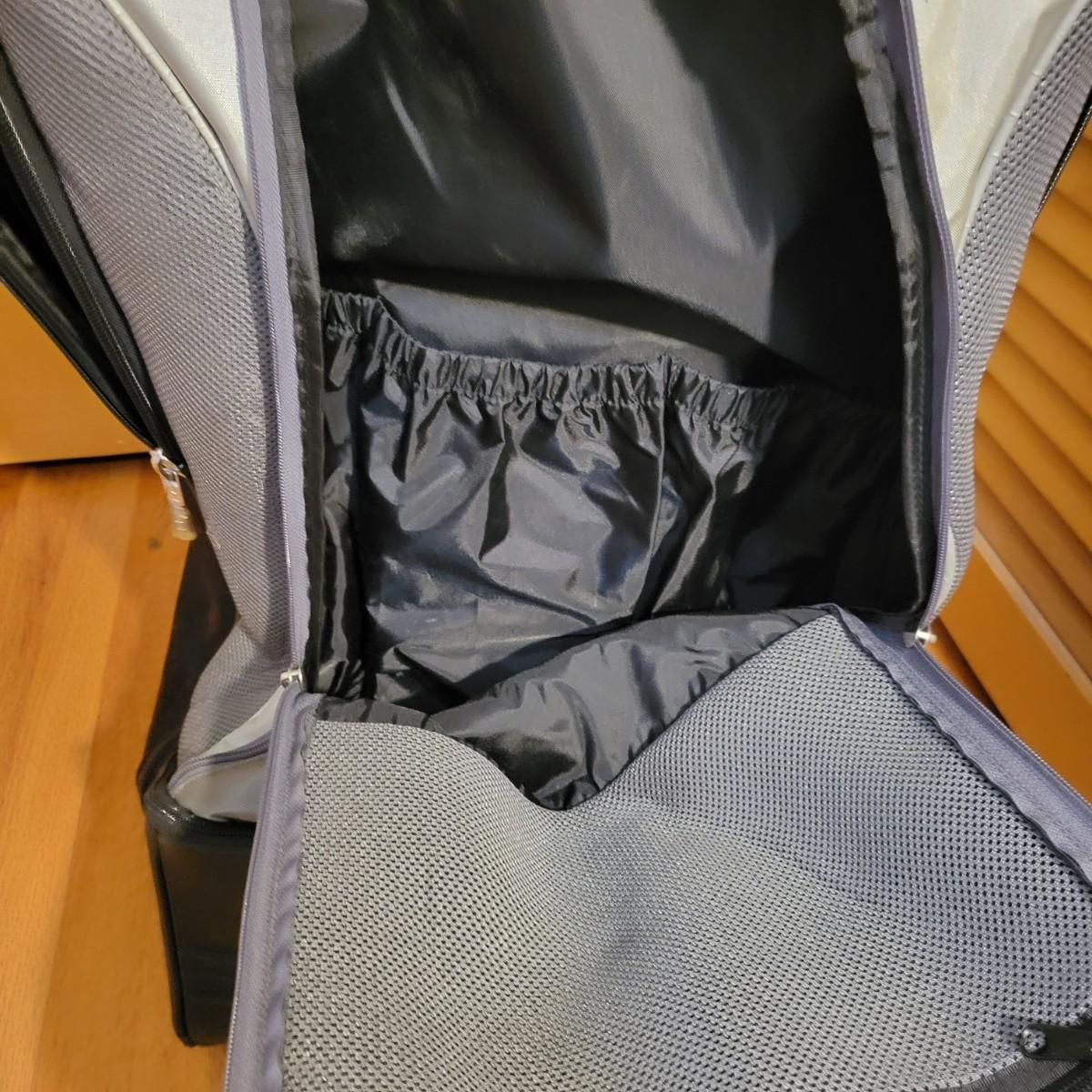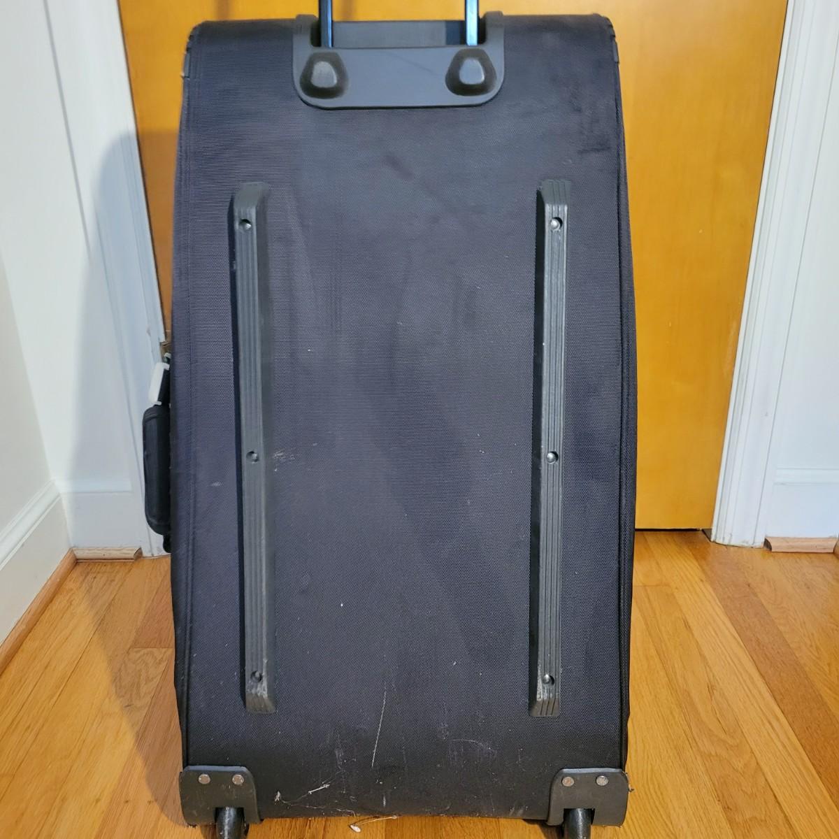A Nike Rolling travel case and gym bags in good condition. Nike travel case does have some scratches from use. Features wheels, a rubber base and extendable handle. Measures approximately 17" x 16" x 30" Lot also includes two gym bags. One is a Nike brand bag and the other is Reebok. Local pickup only