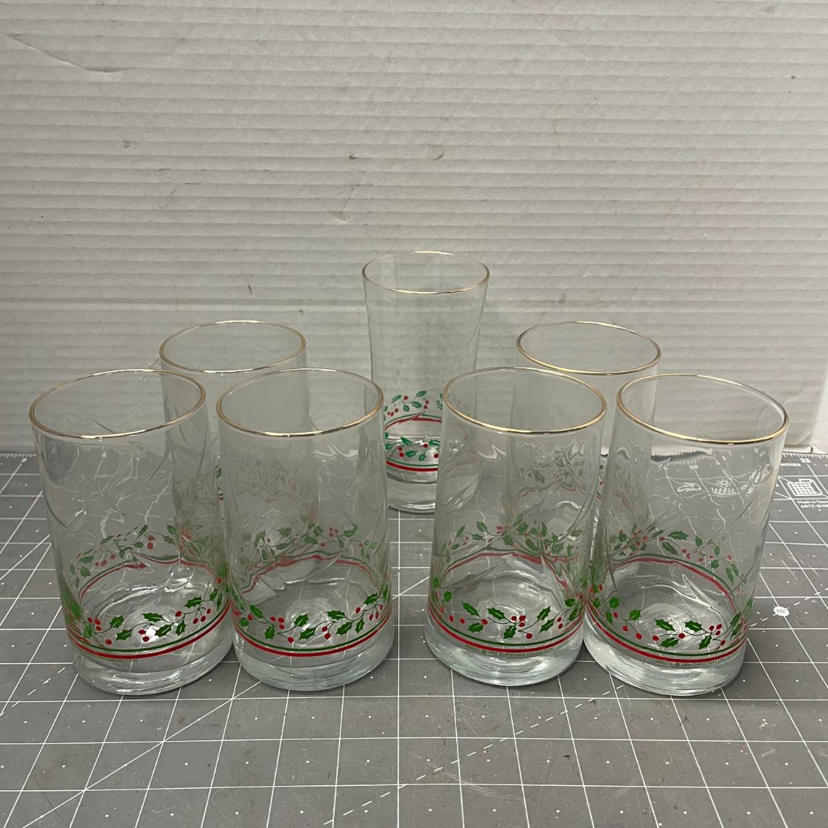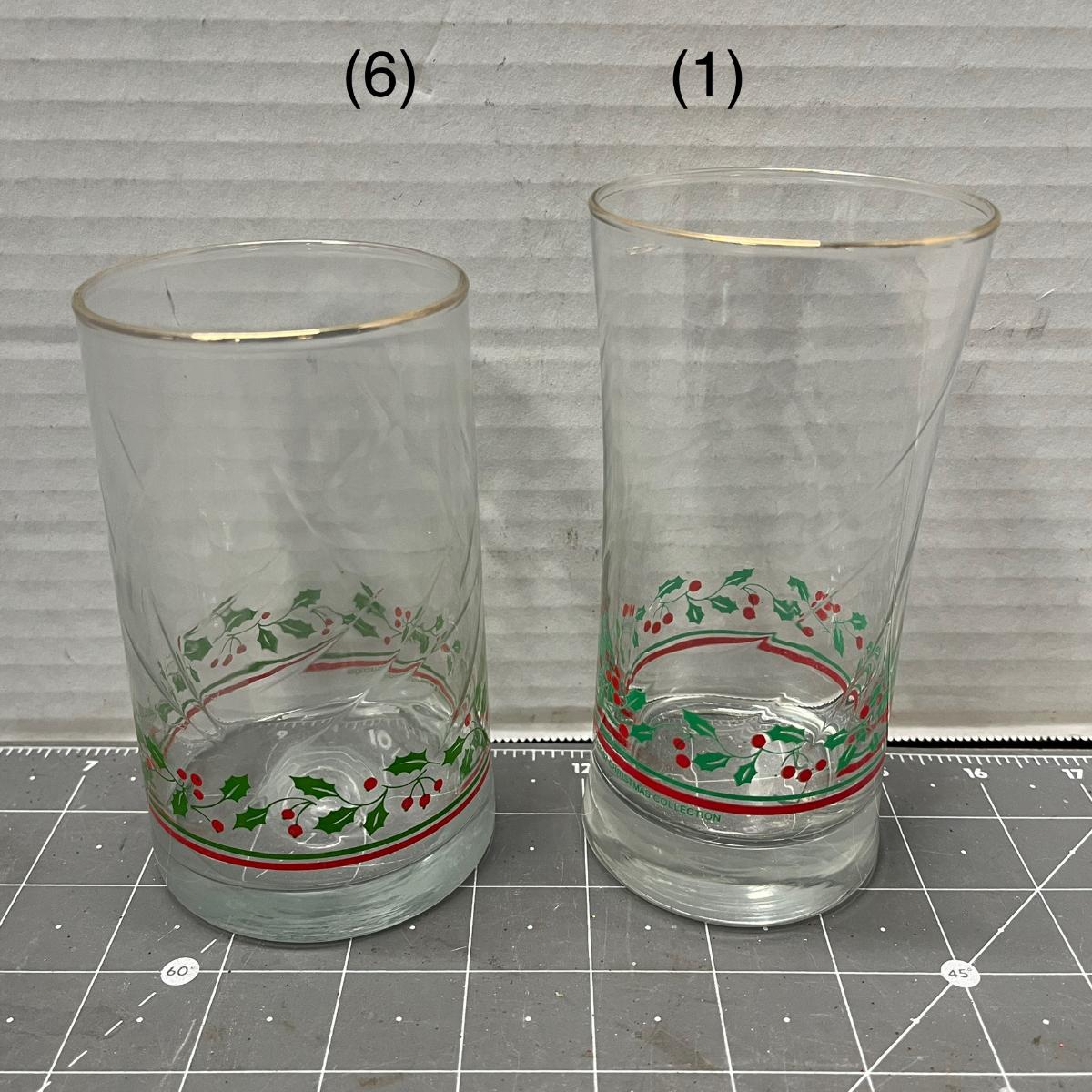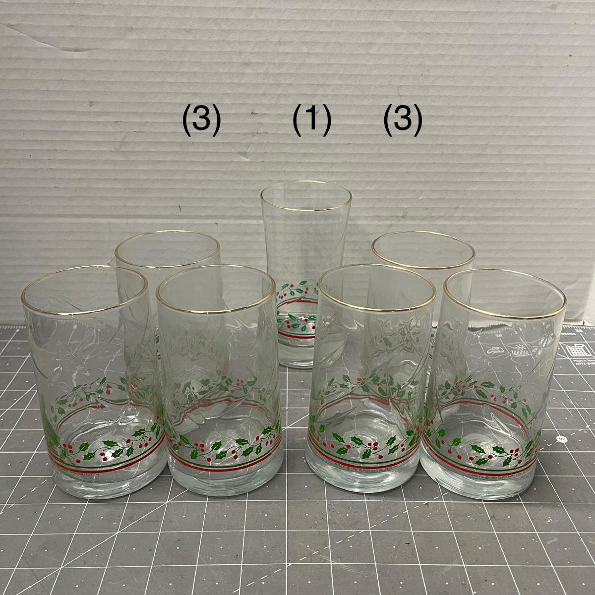 7 glasses, 8 plates, 2 bowls, 1 covered bowl—tree design.