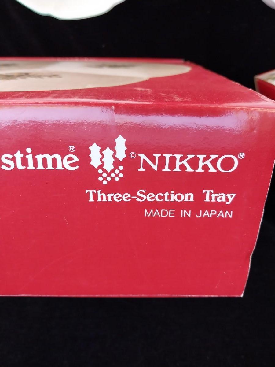 NIKKO HAPPY HOLIDAYS 3 SECTION TRAY & TWO 4' COVERED BON BON DISHES