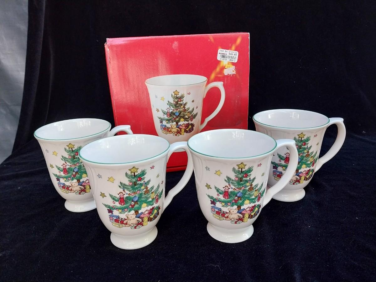 NIKKO HAPPY HOLIDAYS THERMAL VACUUM CARAFE AND 4 COFFEE MUGS