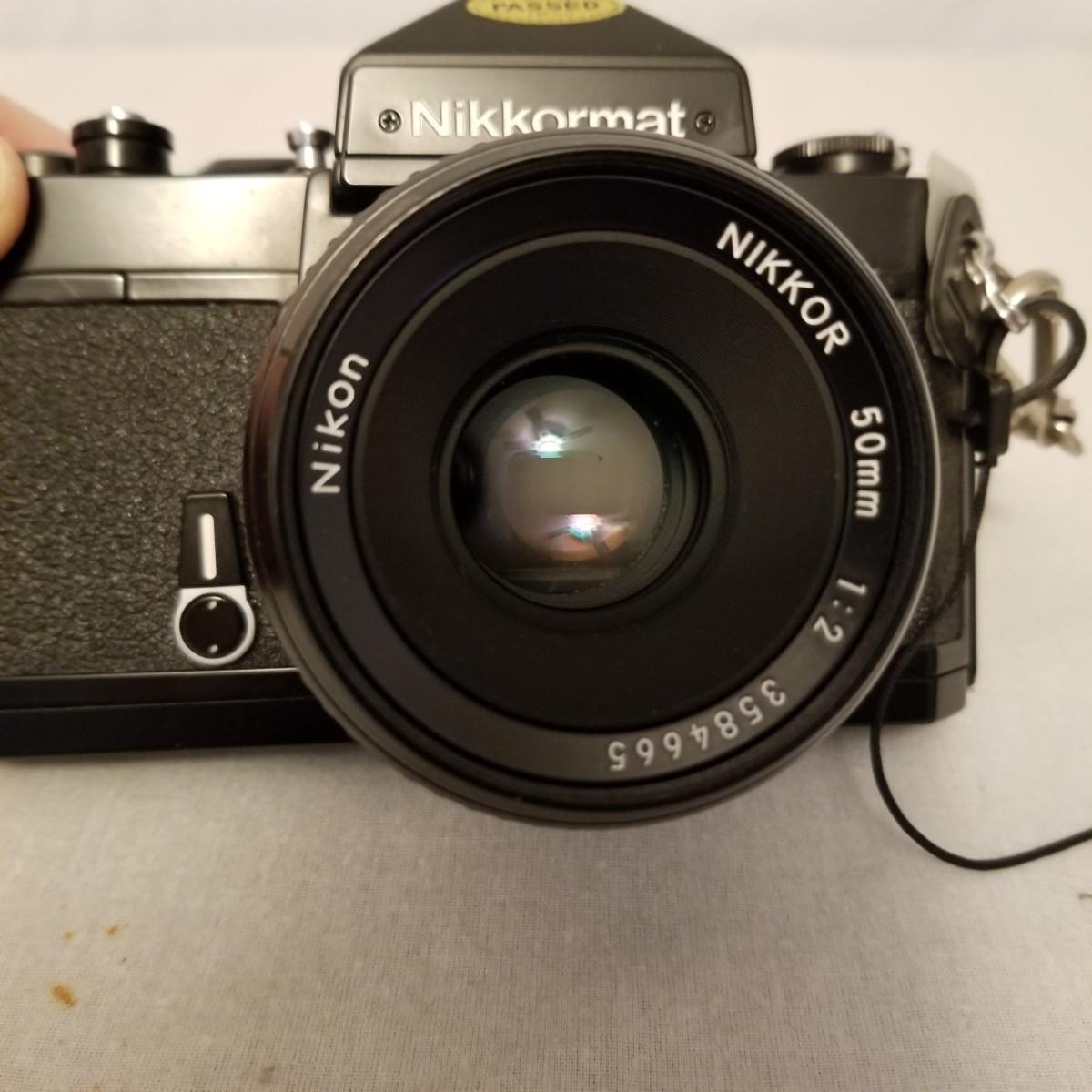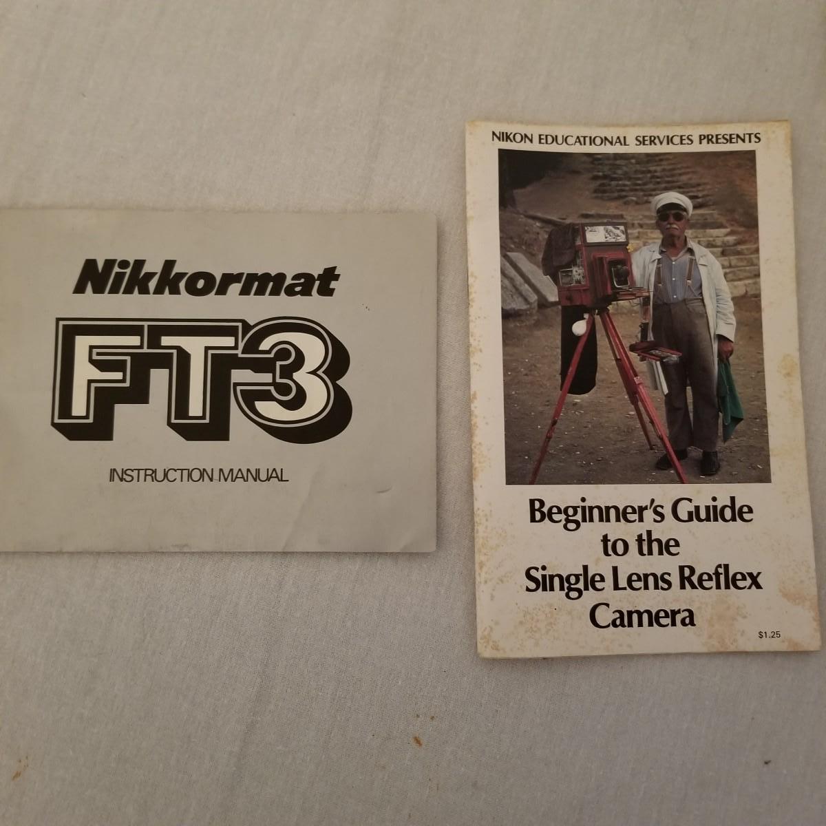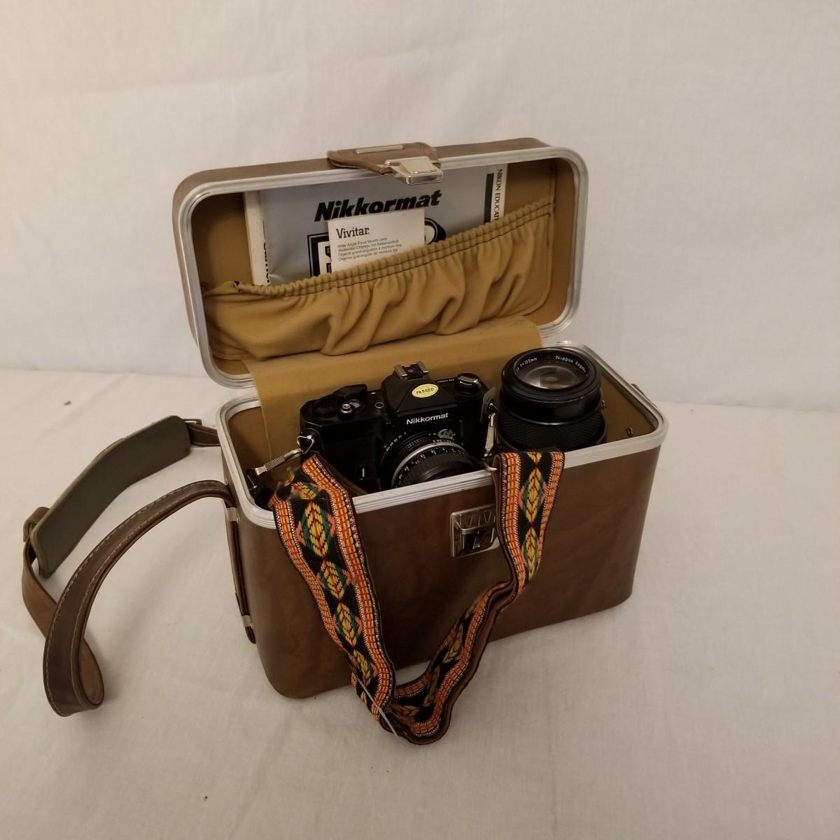 One Nikon Nikkormat FT3 SLR 35mm film camera with case and extra lens. Camera is in excellent condition, has 50mm Nikkor F1:2 standard lens with Skylight 1A filter. Also includes a Nikkor-Q Auto 135mm F2.8 telephoto lens. Case has removable tray andcstoragecunder, measures 12" x6"x9" with shoulder strap. Instruction manual included. Old tech but very clean and useable. See photos for details. Shipping available.