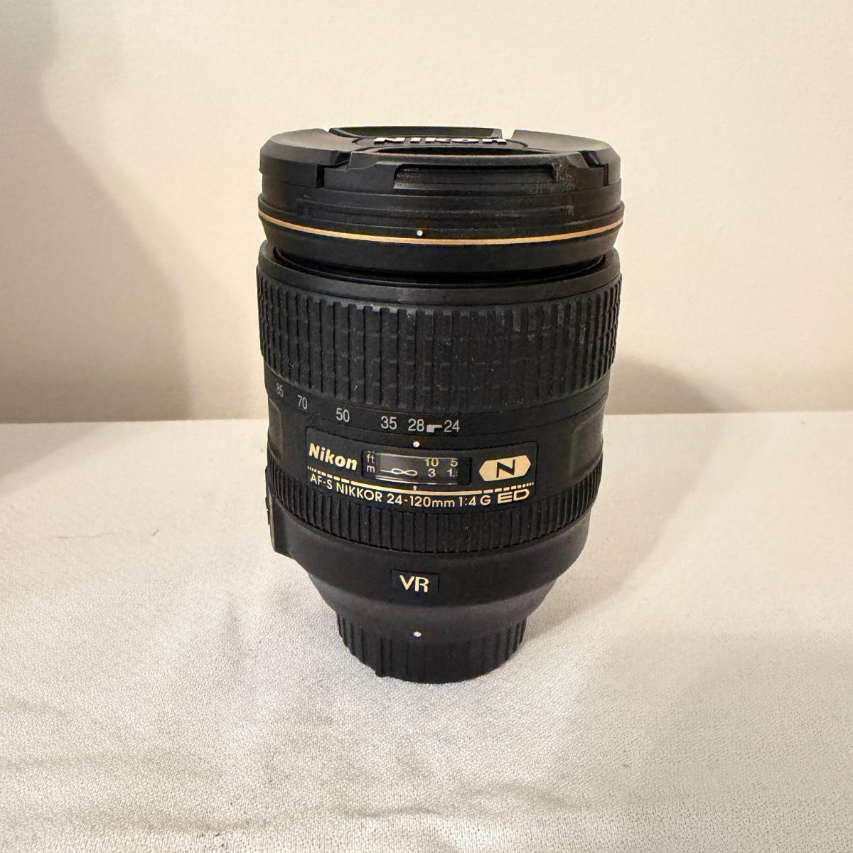 Lot includes a Nikon AF-S Nikkor 24-120MM F/4G ED VR Lens with original box.