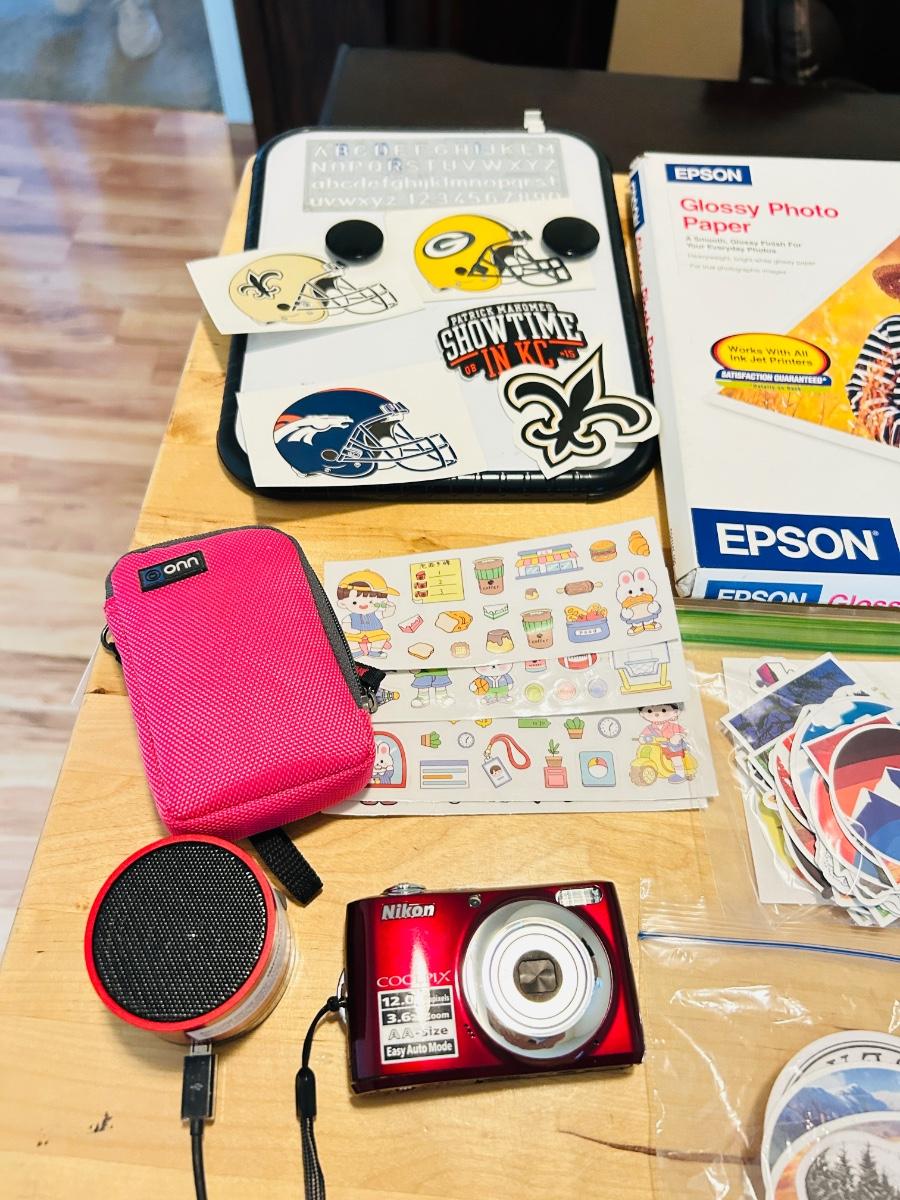 NIKON COOL PIX L22 DIGITAL CAMERA, STICKERS, AND PHOTO PAPER