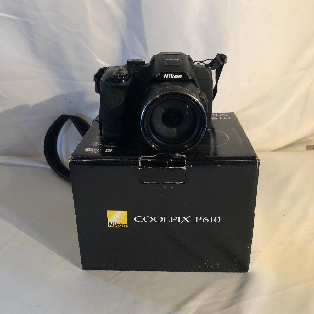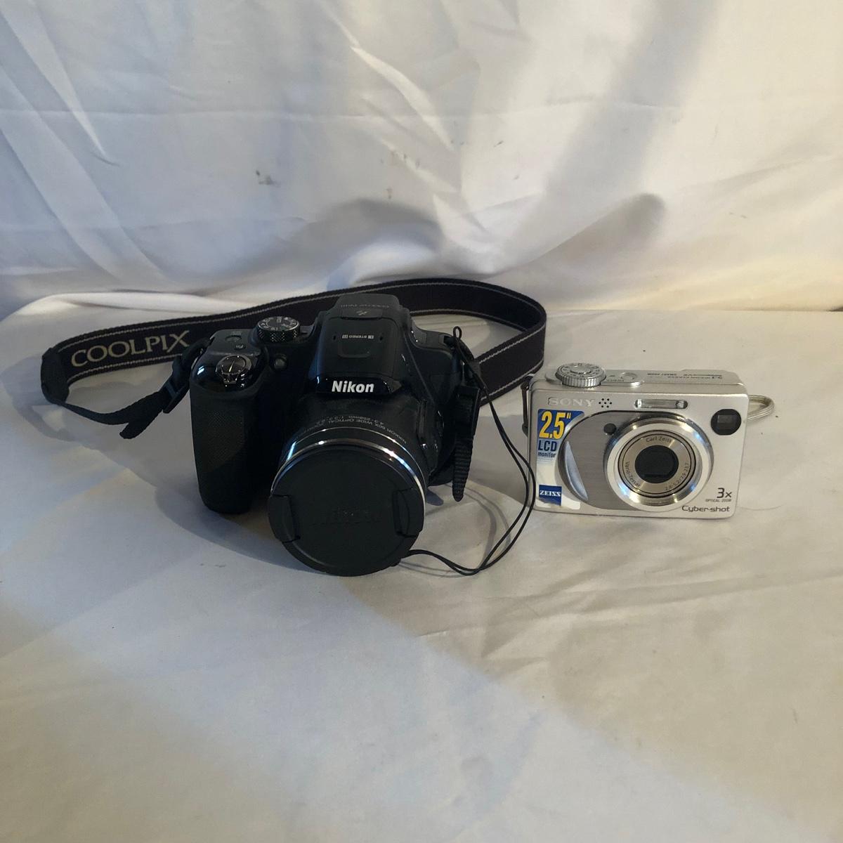 Lot includes Nikon Coolpix P610 digital camera and a Sony Cybershot digital camera with case. Nikon camera powered on when tested and Sony Cybershot had no batteries.