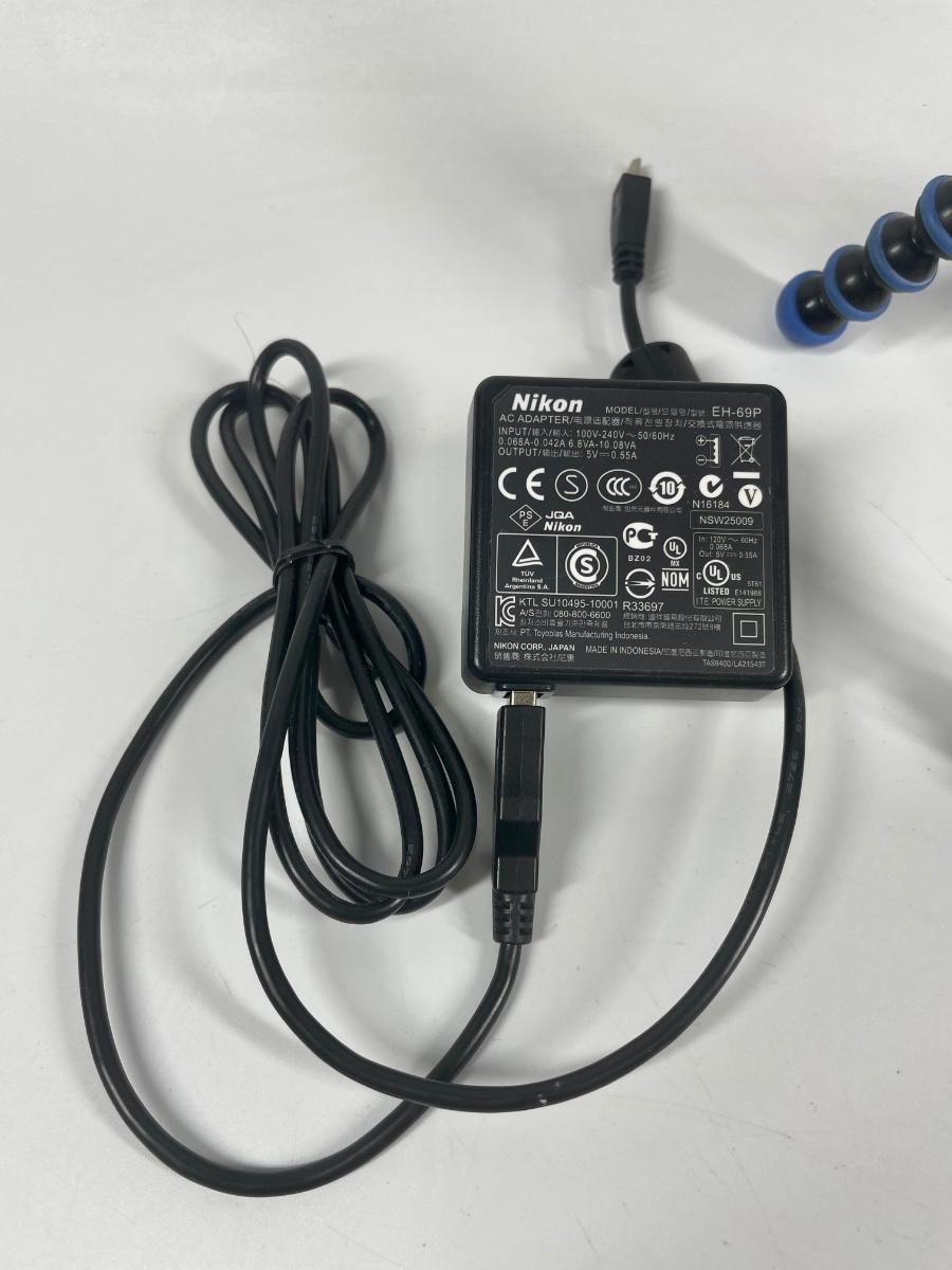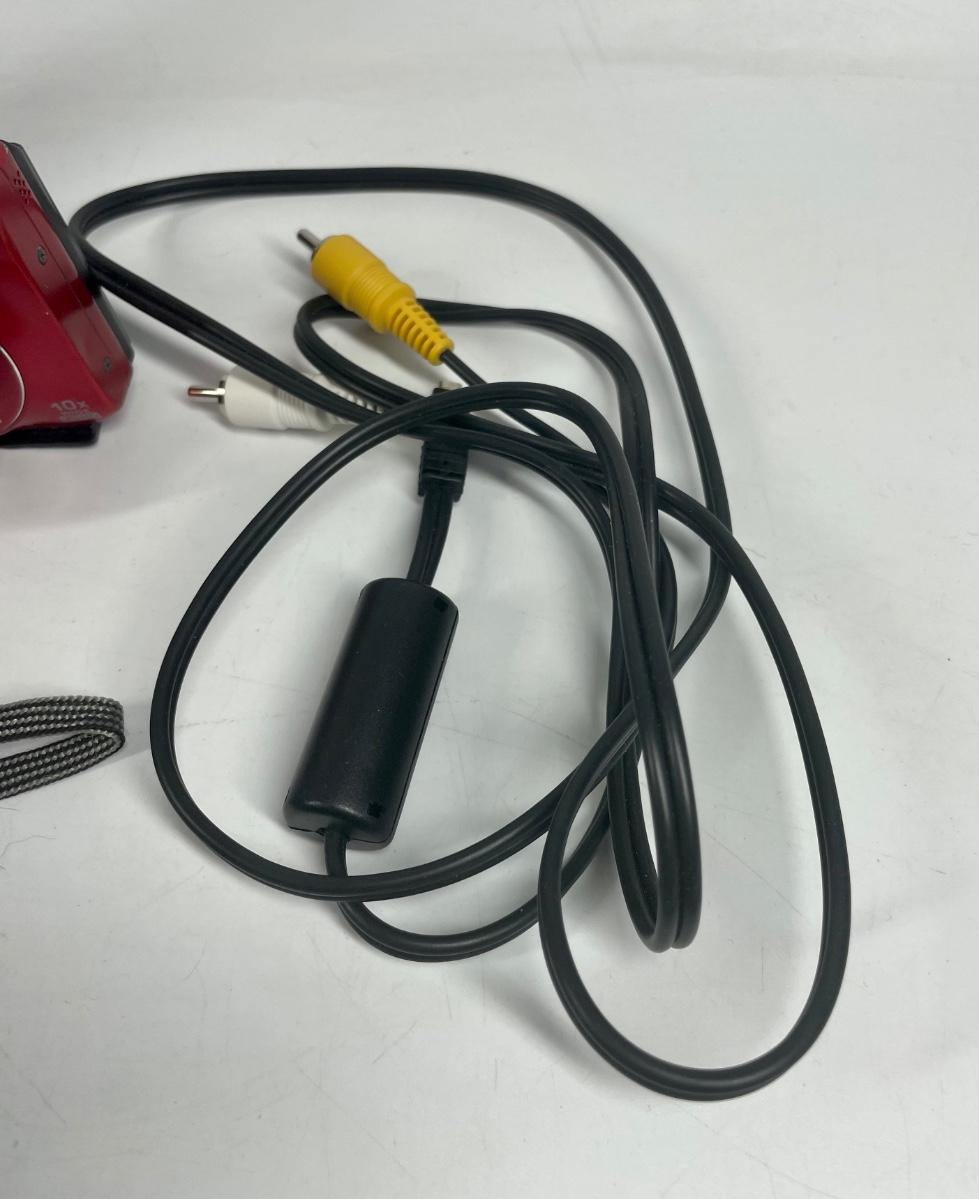 Camera is pocket size, has a 10x zoom. Comes with wall charger, A/V cord, and small Joby tripod. Tested.