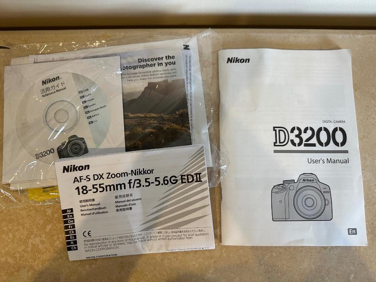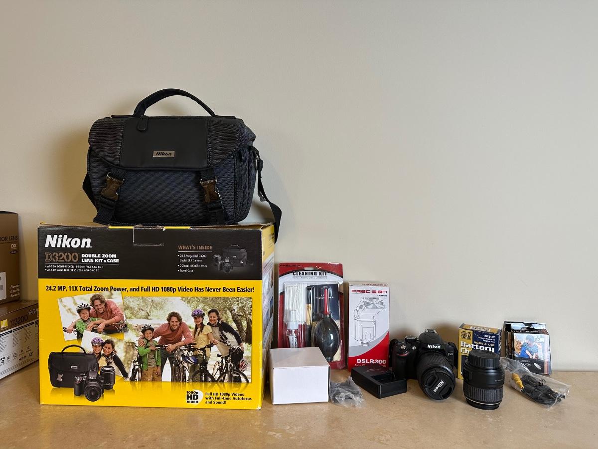 Complete Nikon D3200 DSLR camera set in excellent condition. This 24.2MP camera kit includes: