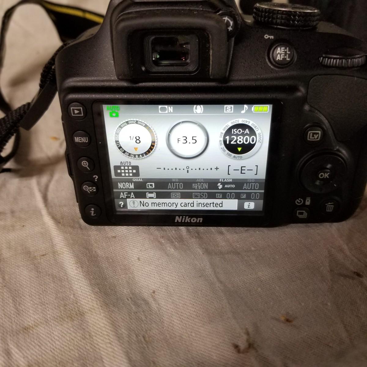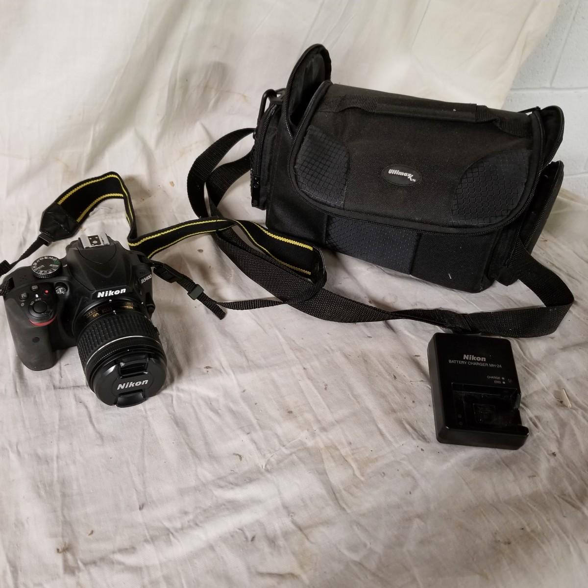 Digital SLR Nikon model D3400.  Comes with Utilimax carry bag and battery charger.  No SD card included.  Has pop-up flash. Tested, works. Has Nikkor 18-55mm zoom lens F 1:3.5.  Shipping available .