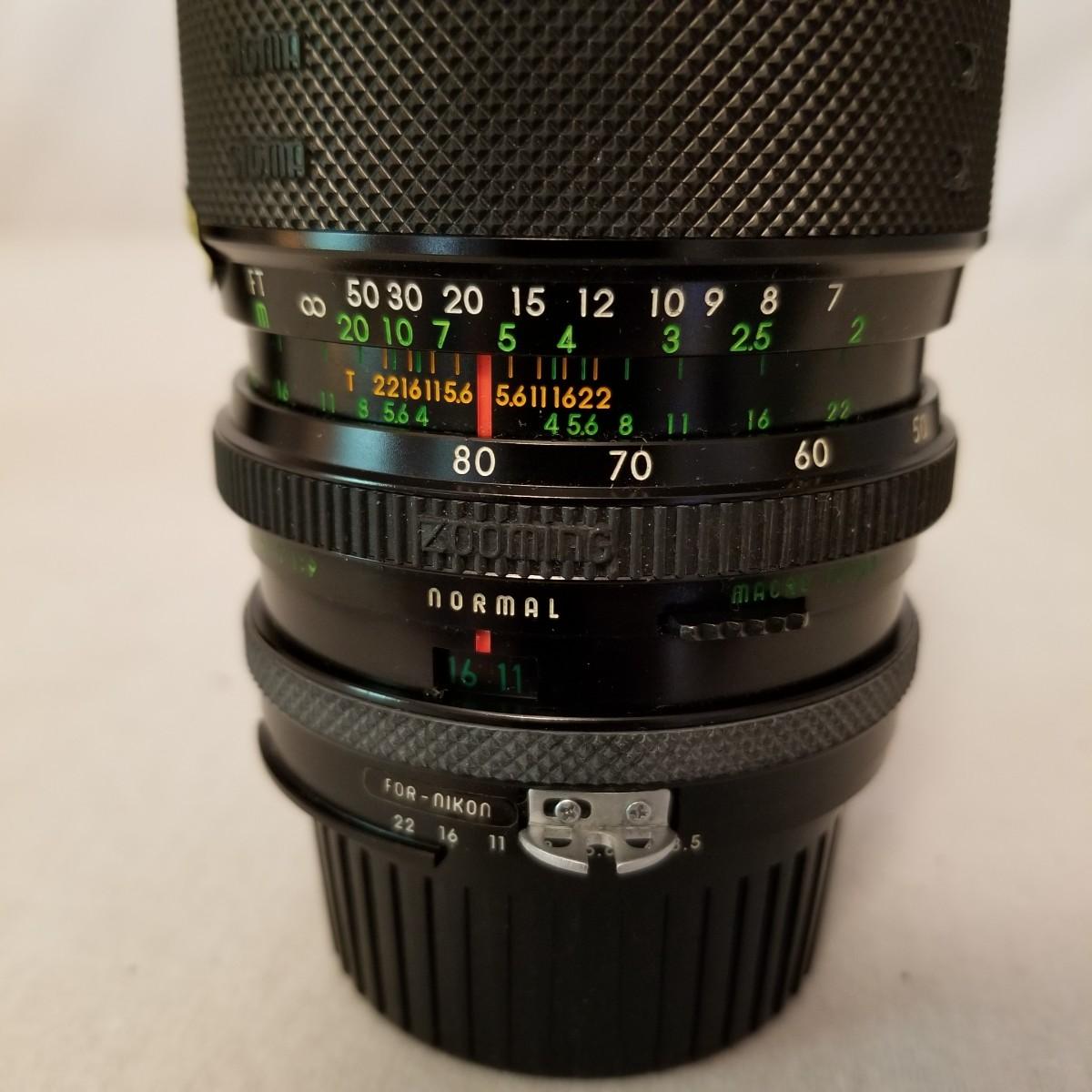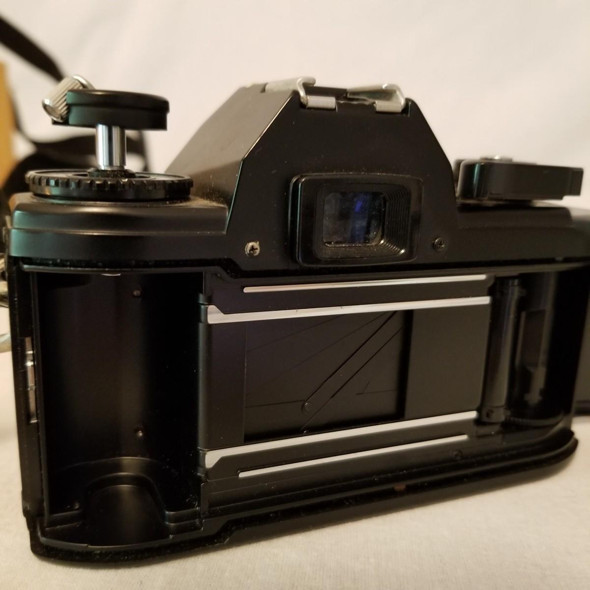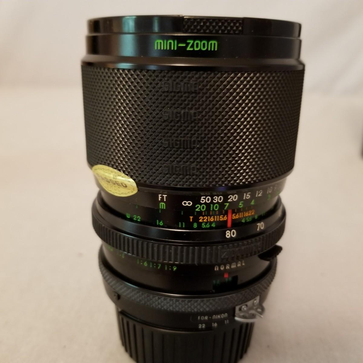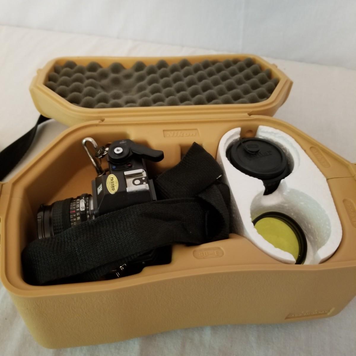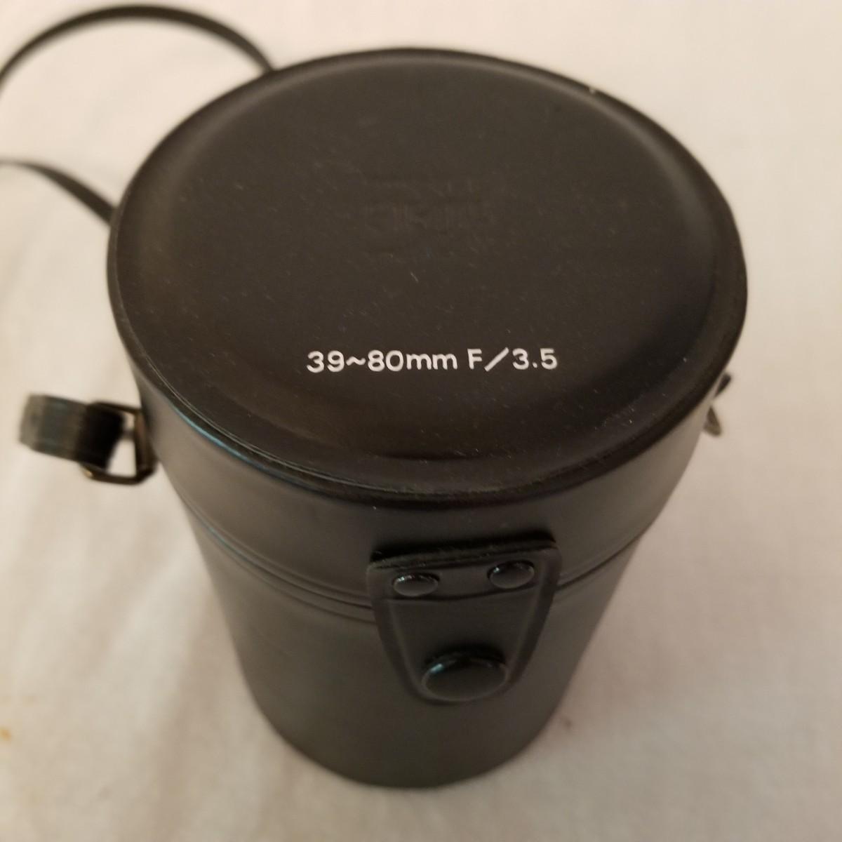 Nikon EM 35mm film camera outfit with three extra lenses and other accessories. Camera comes with hardshell Nikon fitted case, straps, filters, a Speedlight SB-E flash with case. Lenses include; 50mm f 1:1.8 Nikon Series E, one Vivitar 24mm f 1 - 2.8 wide angle, one Sigma 30-80mm f 3.5 short telephoto, and one Sigma 80-200mm f 3.5-4 long telephoto. Sigma lenses have own cases. All equipment in good condition. See photos for details. Shipping available.