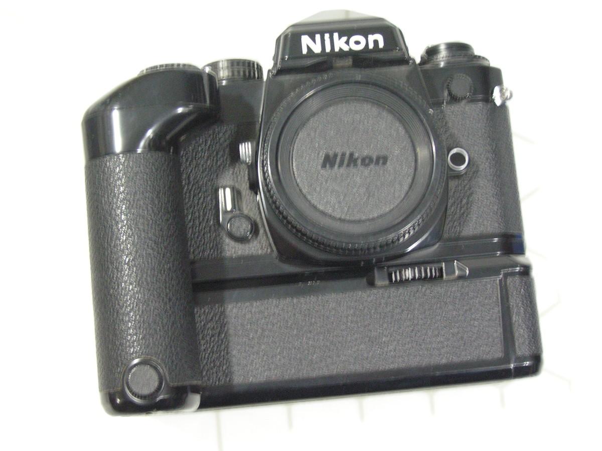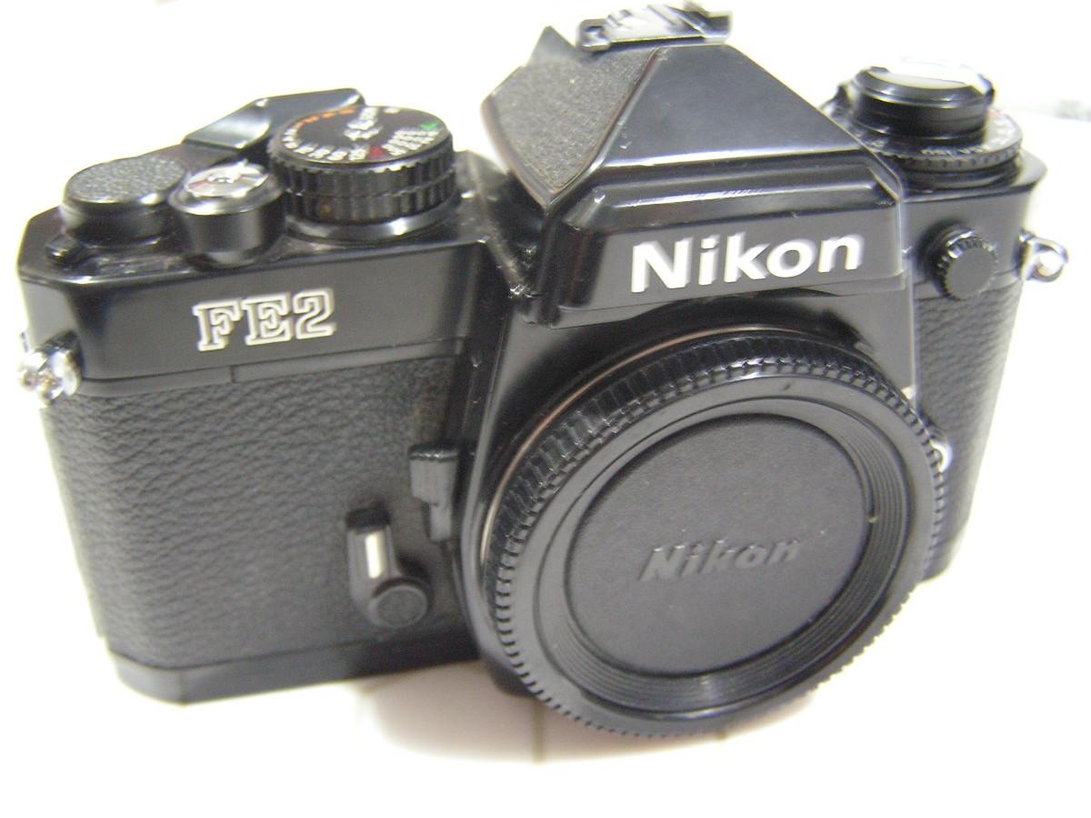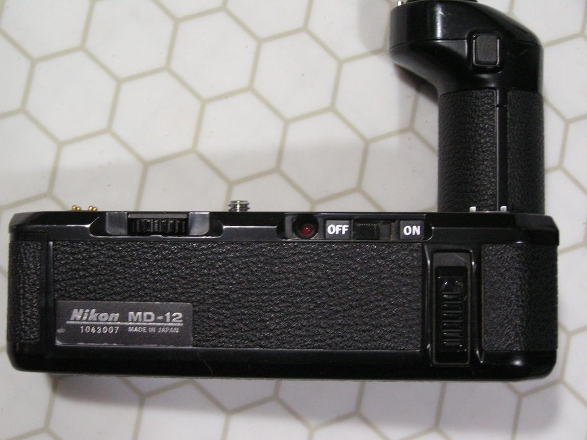 Nikon FE2 w/ MD-12 motor drive & accessories. One of the all time great cameras from Nikon, the FE2 is an icon built to last a lifetime and treasured by professionals and serious amateurs alike. Amazing shutter speeds from 8 sec. to 1/4000 sec. from it's electronically controlled multi-blade titanium shutter, it was unparalleled in it's day. Plus it has a 1/250 sec. mechanical backup shutter setting that is unique to the FE2, just in case the battery fails so you can continue shooting. Dual modes, manual and aperture priority AE, are available along with flash sink from 8 sec. to 1/250 sec. Flash exposure is TTL automatically metered in all modes and at all shutter sink speeds with Nikon TTL flash units. The optional MD-12 motor drive (when attached) winds the film automatically a single frame with each shutter release (in S mode) or at 3.2 frames per second continuous by holding down the shutter release button (in C mode). Includes the original camera box/packaging, body cap, camera user manual, motor drive user manual. Camera and motor drive are in excellent condition with only minor blemishes and have been function test and are known good working units. Extra accessories include AH-3 motor drive tripod adapter base, B2 matte focus screen for macro photography and MR-3 vertical hold shutter release button. FE2 SN:2536701. MD-12 SN:1043007. L@@K for Nikon lenses elsewhere in this sale!