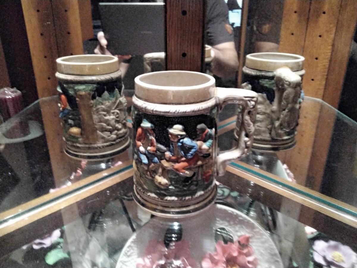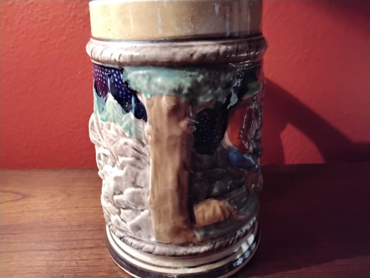 NIKONIKO Handpainted Japan Ceramic Beer Stein. Really good condition, no chips, cracks or repairs. 5 1/4"h x 5 3/4" at base.  Beautiful vibrant colors.