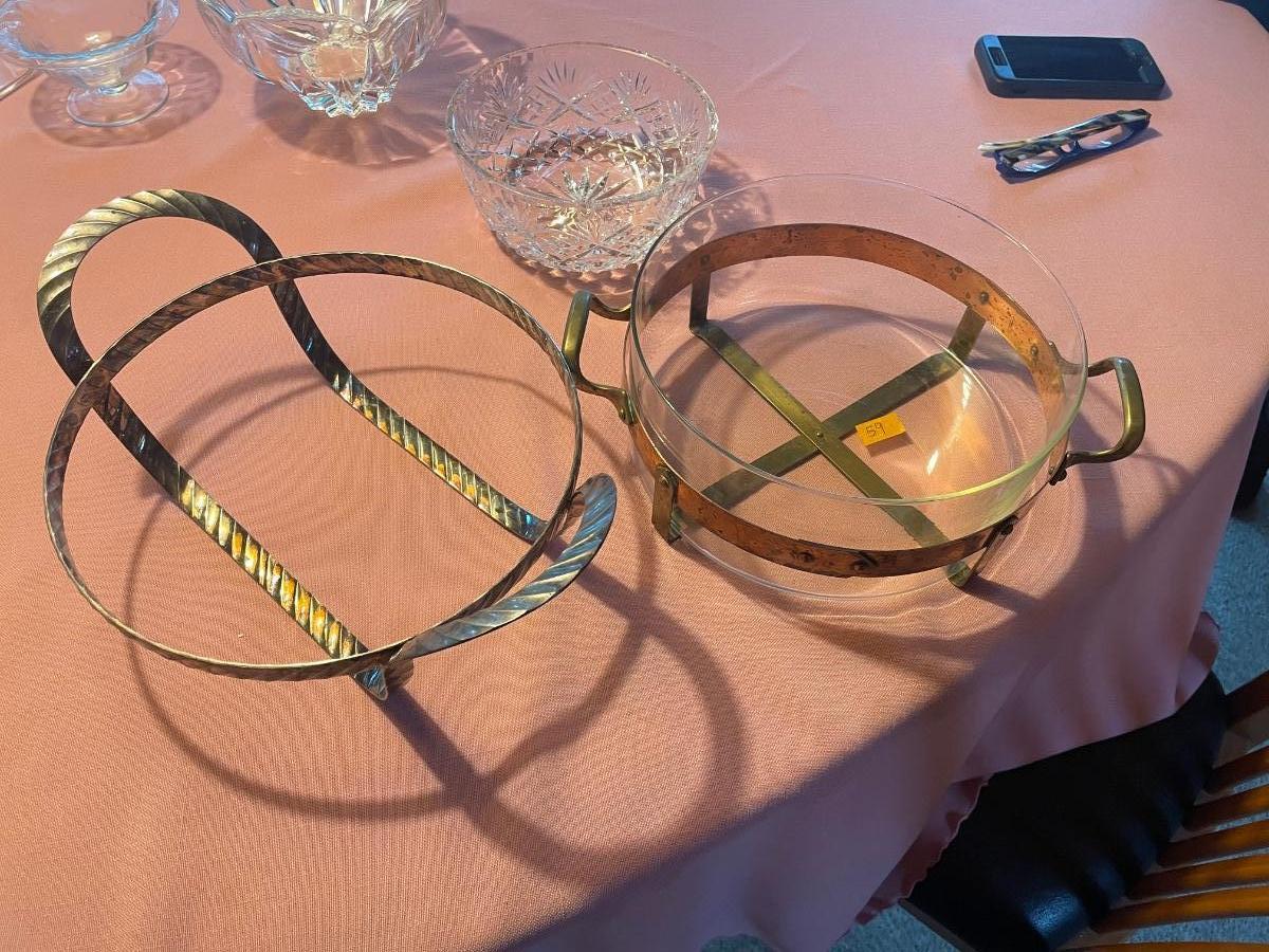 Nilsjohan! Of Sweden copper & glass casserole, Metal 2 handle casserole holder.