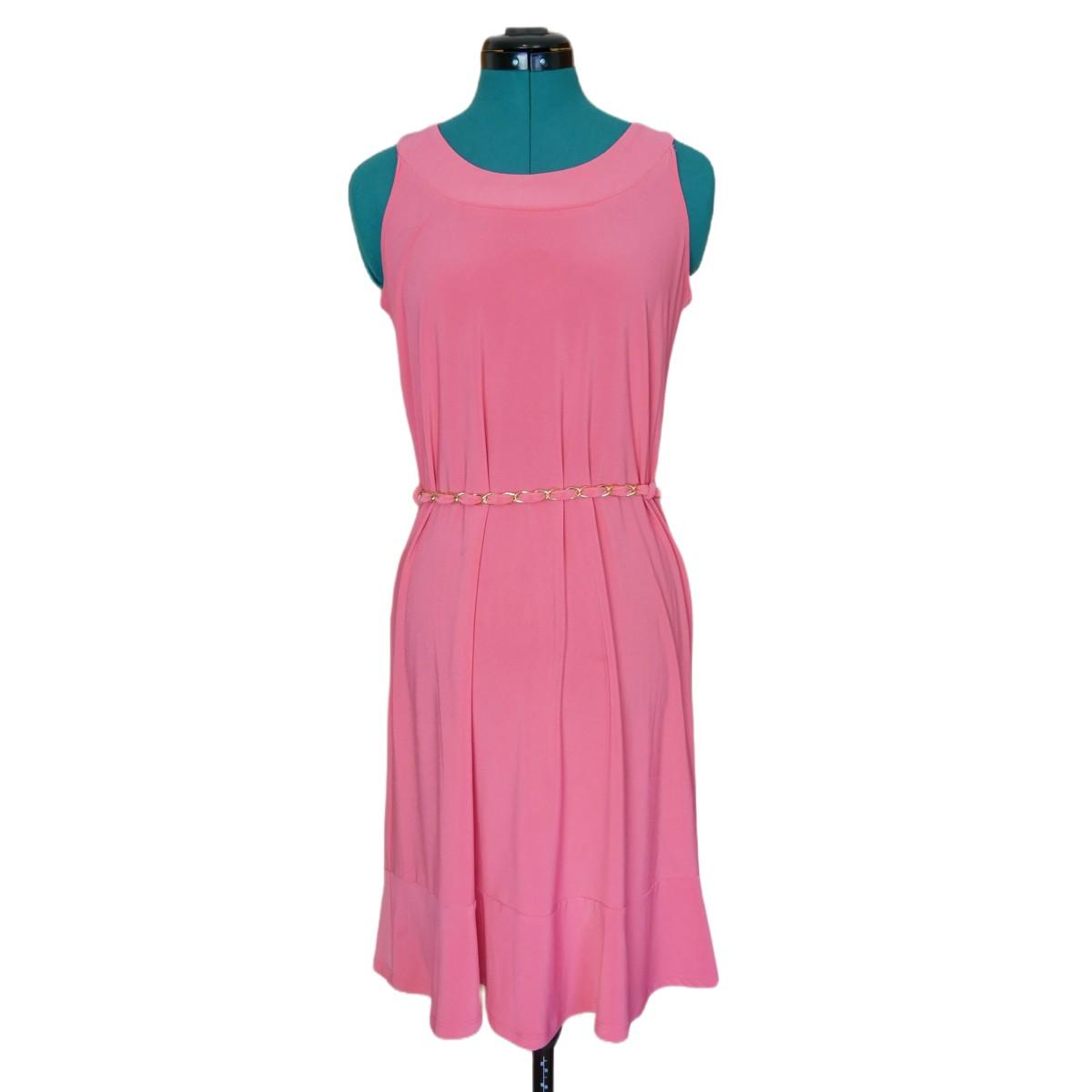 Nina Leonard pink dress in women's size small with gold chain belt. Great condition.